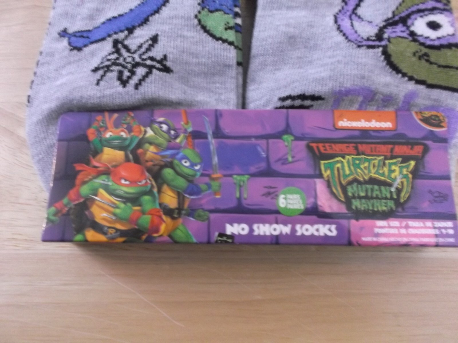 как выглядит TEENAGE MUTANT NINJA TURTLES NO SHOW SOCKS - 6 PAIRS - SHOE SIZE 4-10 - NWT фото
