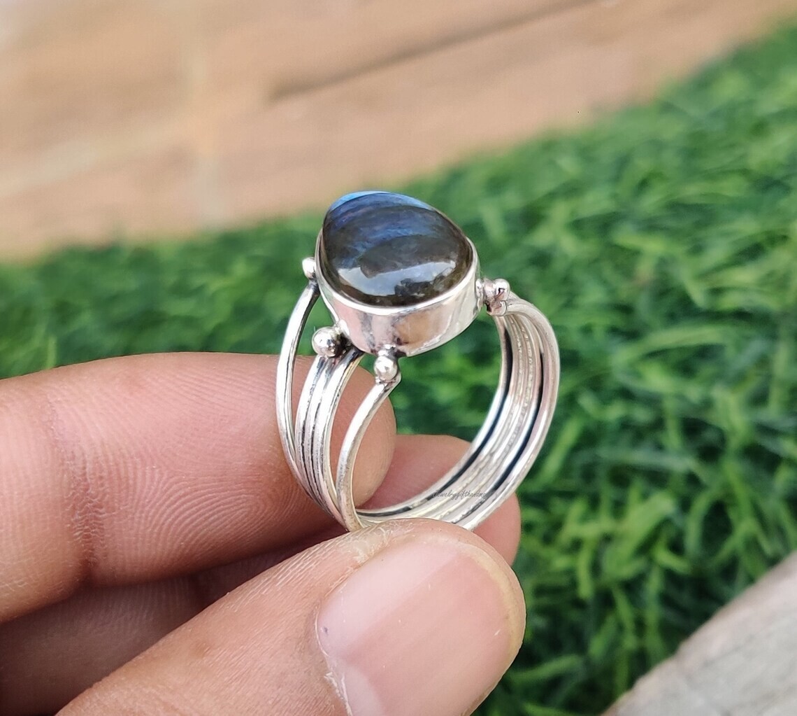 как выглядит 925 Sterling Silver Natural Labradorite Ring Gemstone Women Jewelry For Her A 31 фото