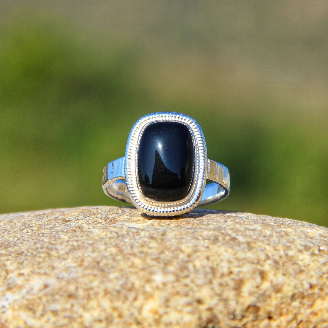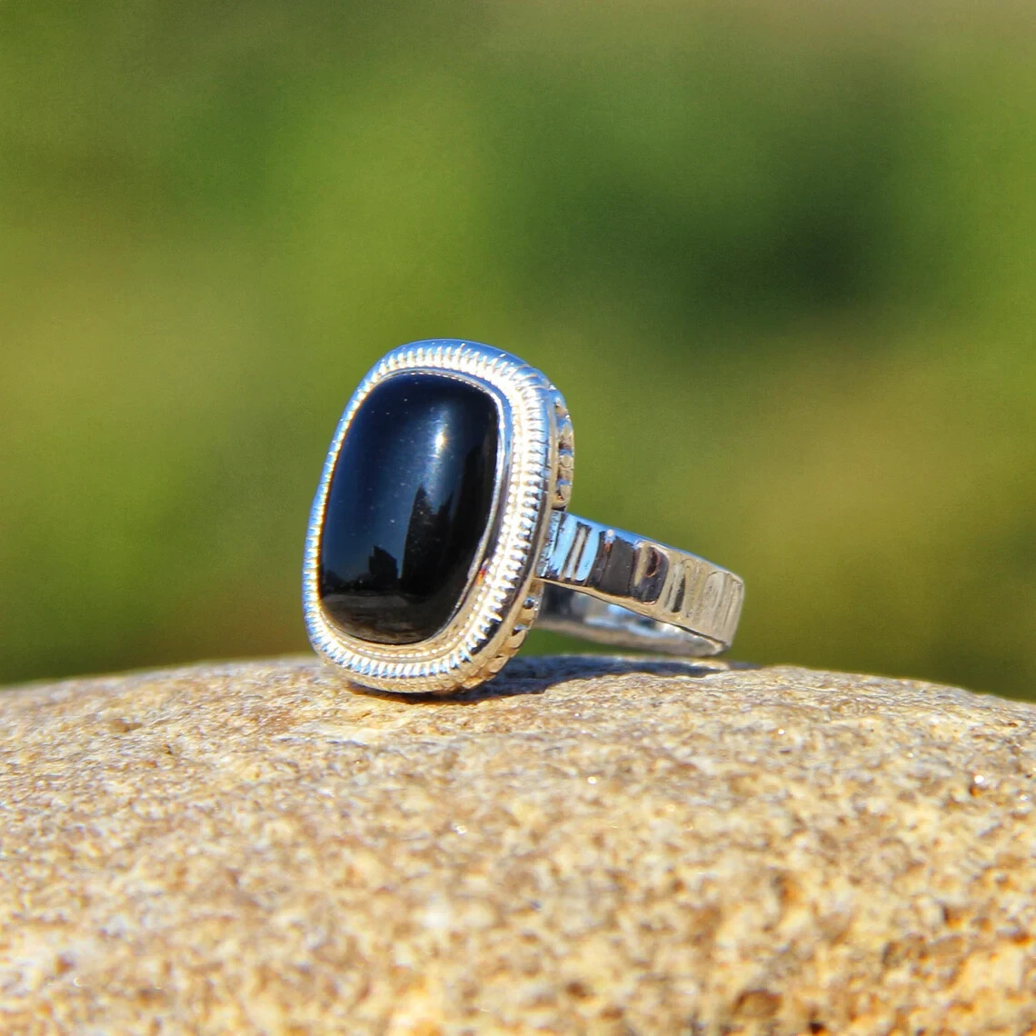как выглядит 925 Sterling Silver Natural Black Onyx Ring Gemstone Women Jewelry For Her A 50 фото