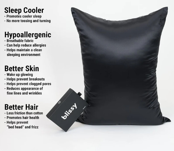 как выглядит Blissy Silk KING Pillowcase and matching Sleep Mask black, New in Box фото