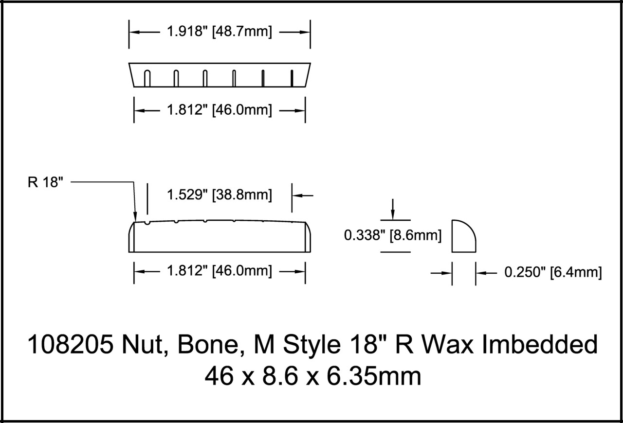 Nut Guitar Bone M Style 46 mm 1 13/16 Right Hand 18 radius wax infused 108205