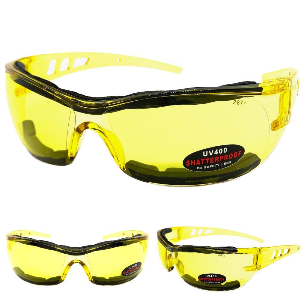 MOTORCYCLE Biker Day or Night Riding Padded HD Yellow Lens SUN GLASSES GOGGLES