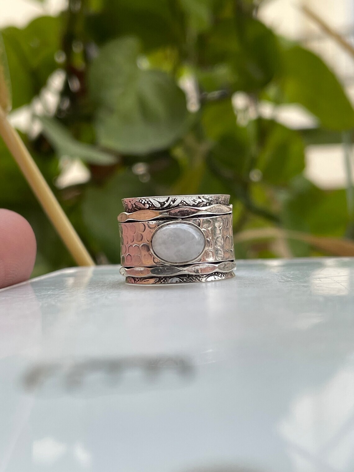 как выглядит 925 Sterling Silver Moonstone Spinner Ring Handmade Women Jewelry For Her B 75 фото