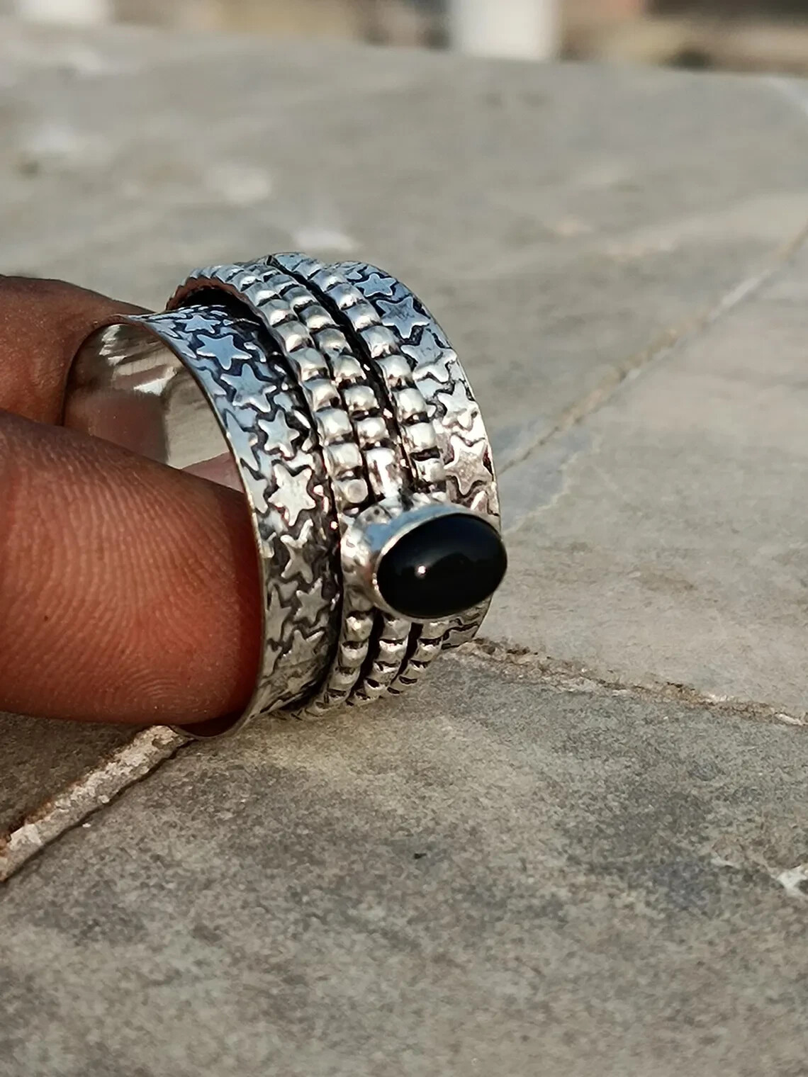 как выглядит 925 Sterling Silver Black Onyx Spinner Ring Handmade Women Jewelry For Her B 79 фото