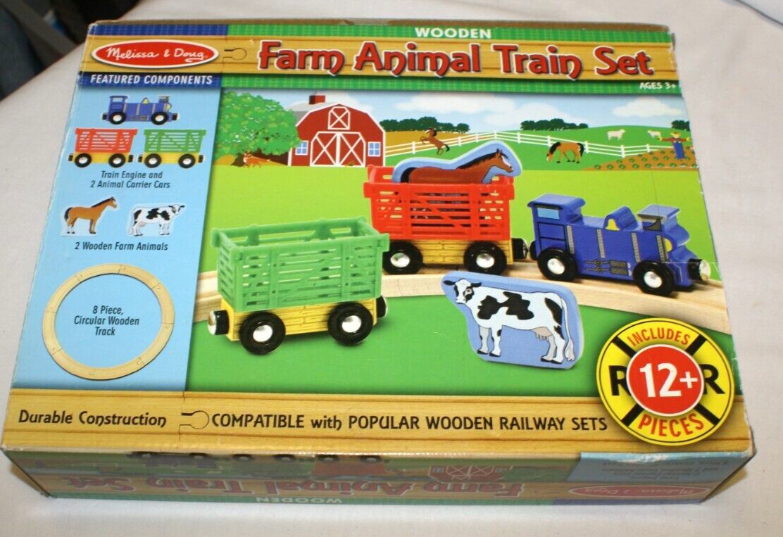 Melissa Doug Farm Animal Train Set Wooden New Original Box