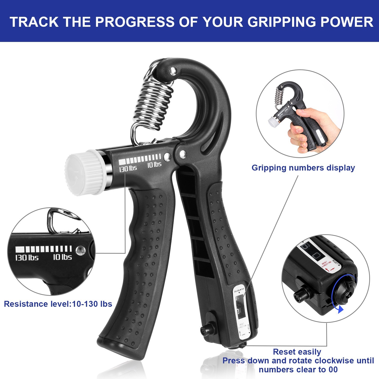 XPRT Fitness Hand Grip Strengthener Adjustable 10-130lb Counter Forearm Exercise