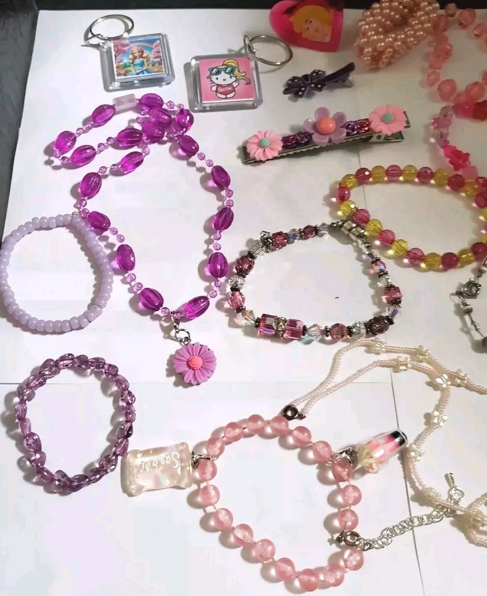 как выглядит Pink Girly Cute Bracelets, Necklaces, Keychains, Rings, Charms, Barettes Jewelry фото