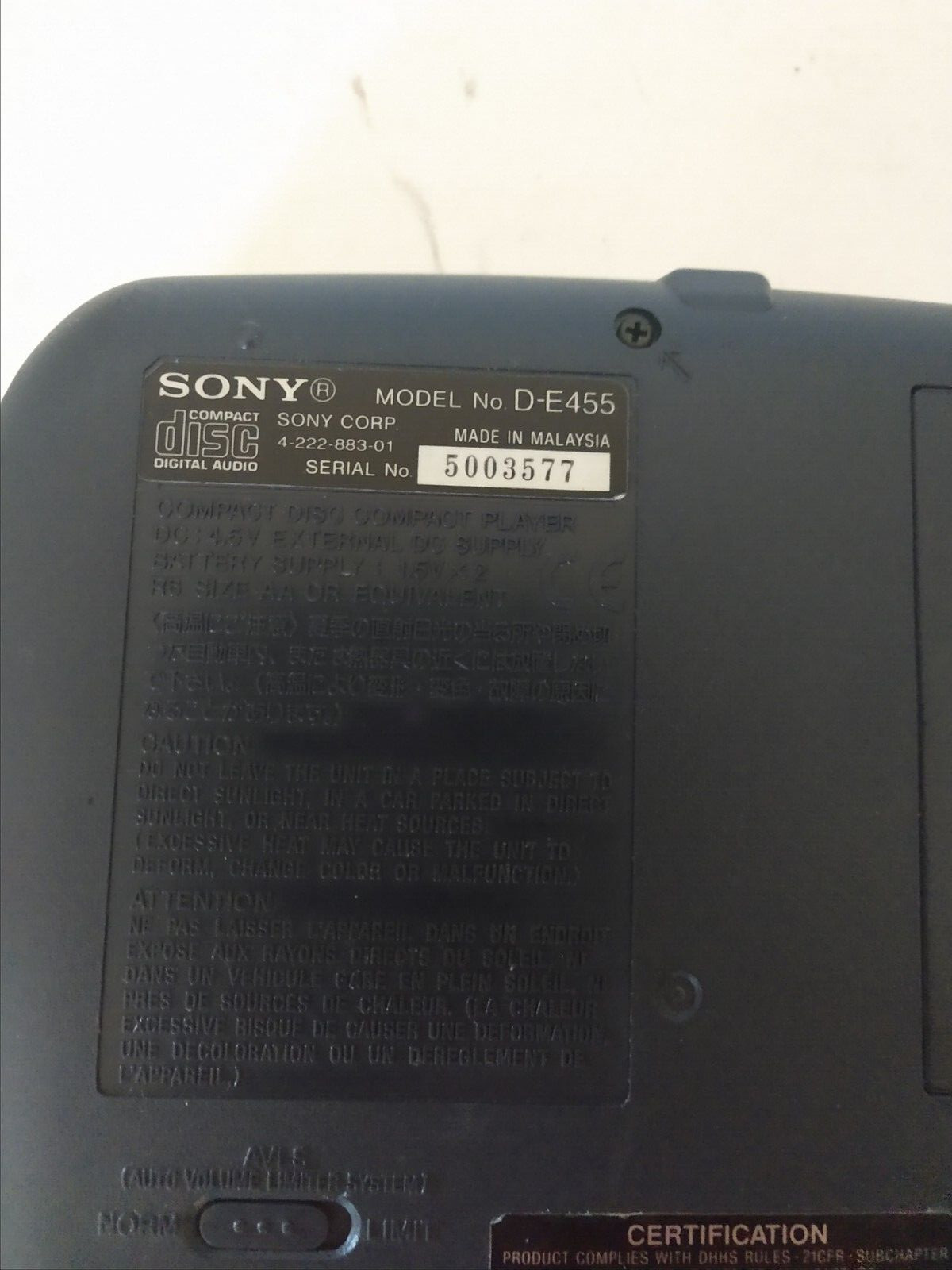 Sony Discman ESP2 D-E445 Groove Compact CD Player Car Steady Sound Working