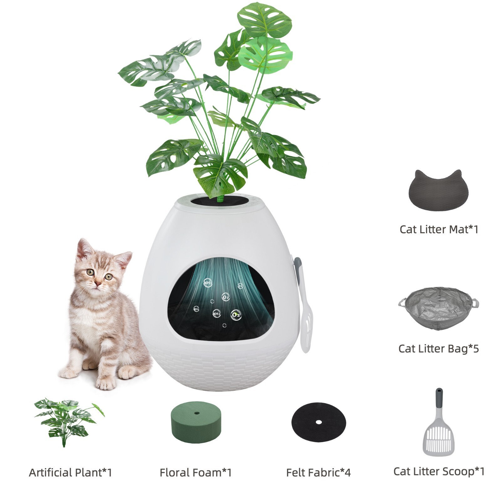 Eggloa6 Hidden Litter Box Plant Cat Litter Box with Smart Odor Removal System