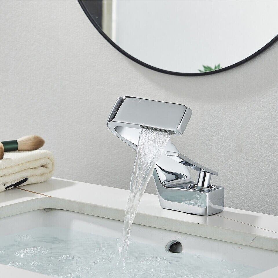 Chrome Waterfall Bathroom Sink Faucet Single Handle Single Hole Vanity Mixer Tap