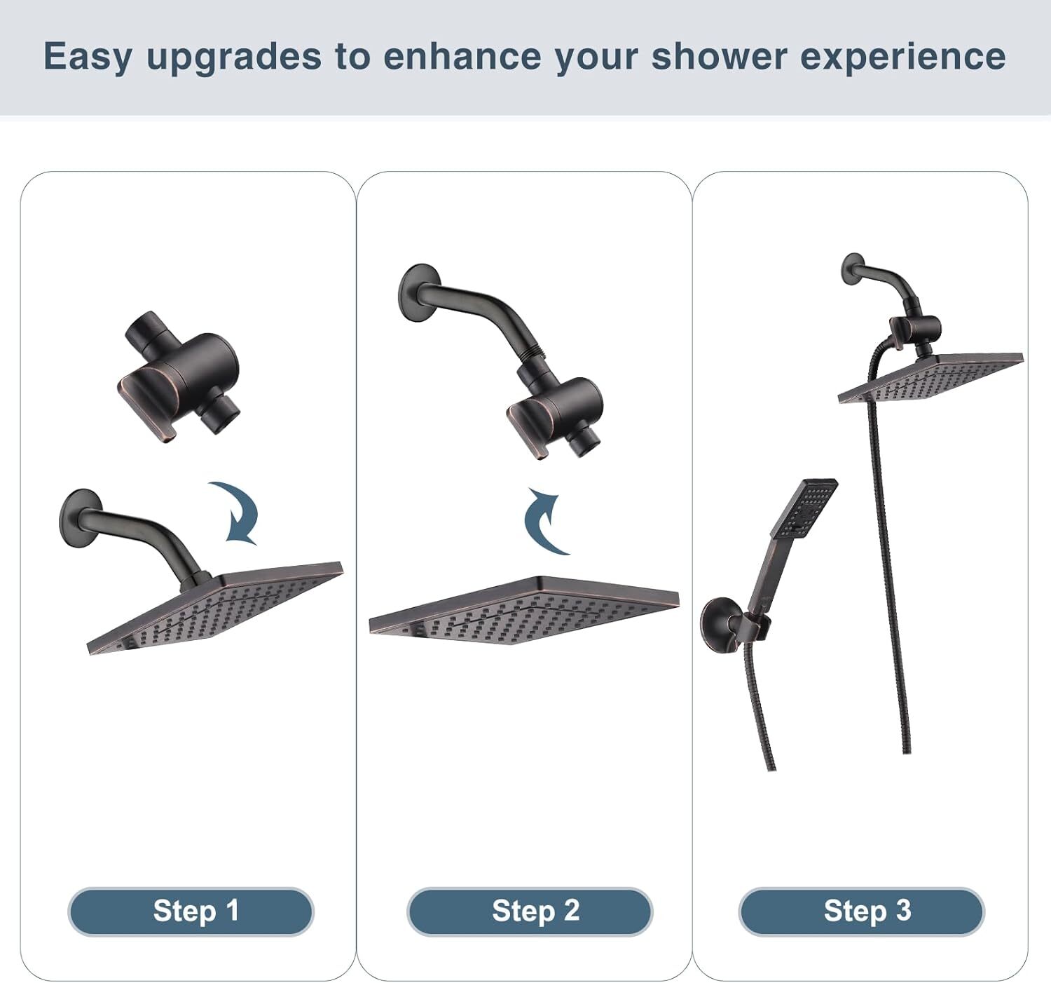 Shower Arm Diverter Valve for Hand Held Showerhead and Fixed Spray Head 3-Way S