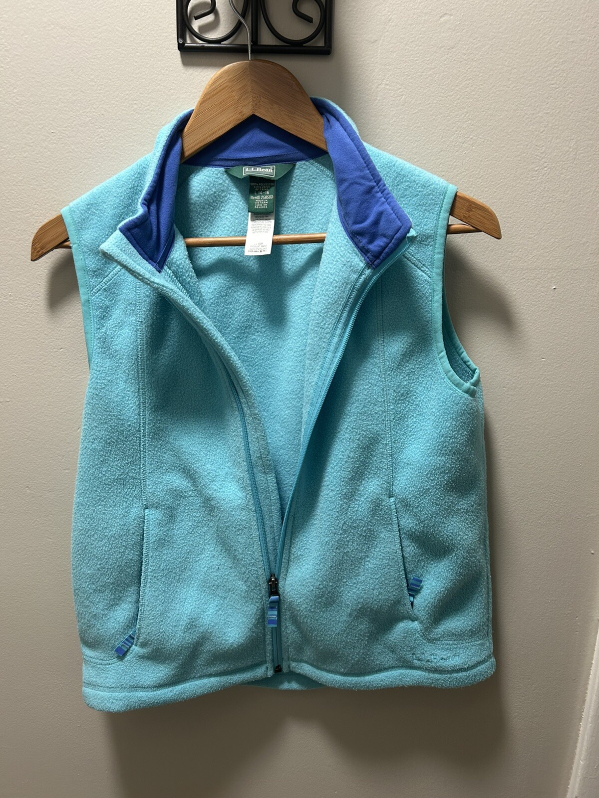 как выглядит LL Bean Youth 14-16 Turquoise Blue Fleece Full Zip Vest Outerwear Pockets фото