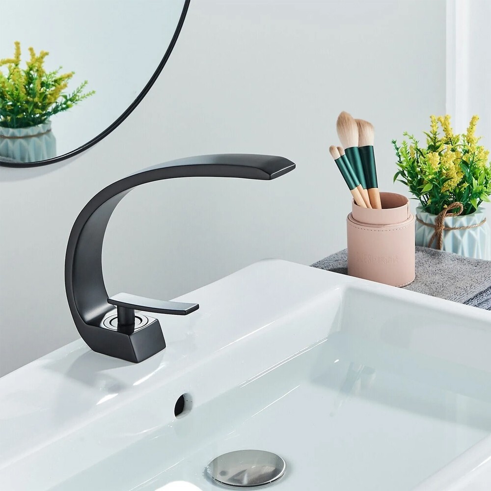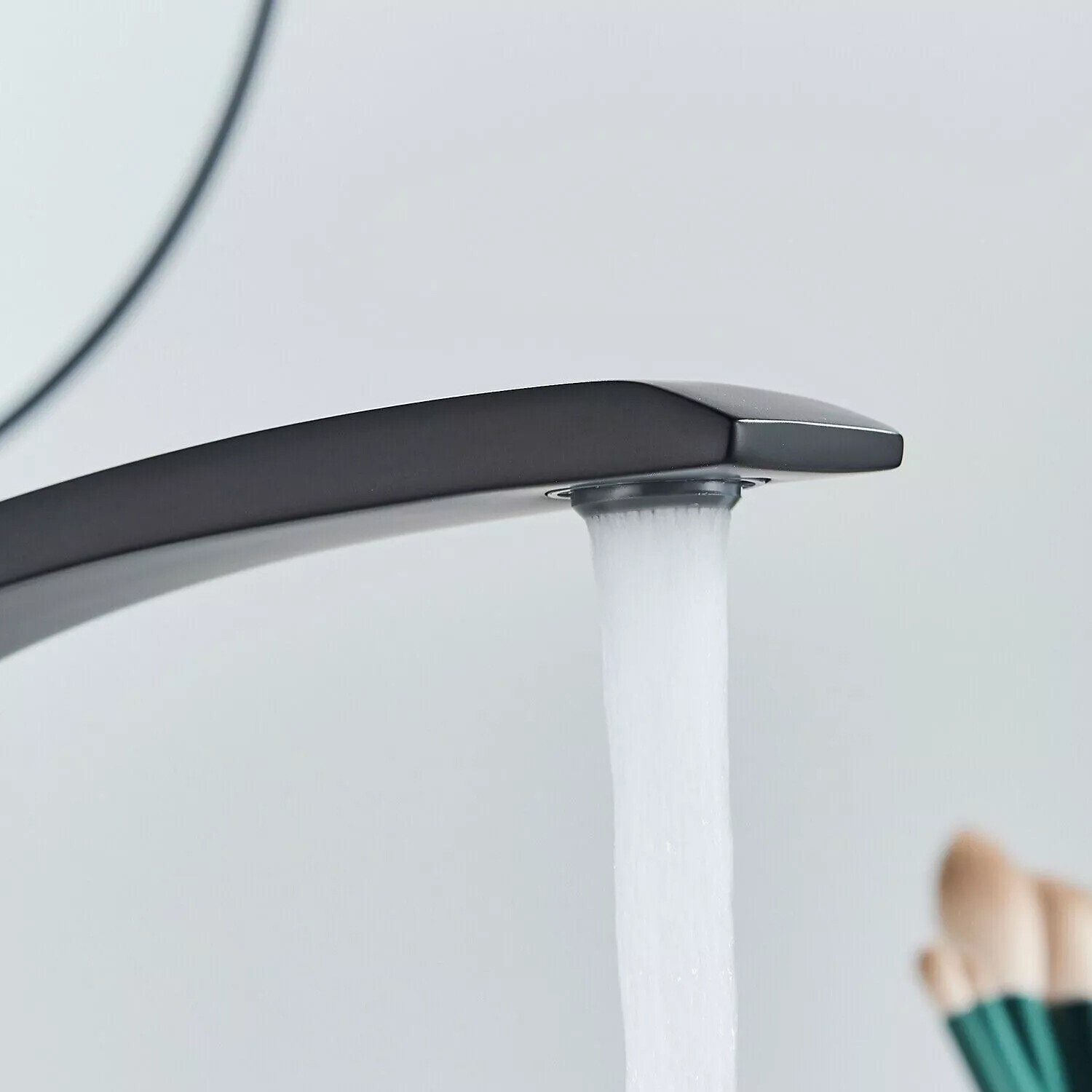 Matte Black Waterfall Bathroom Vessel Faucet Single Hole Vanity Sink Mixer Tap