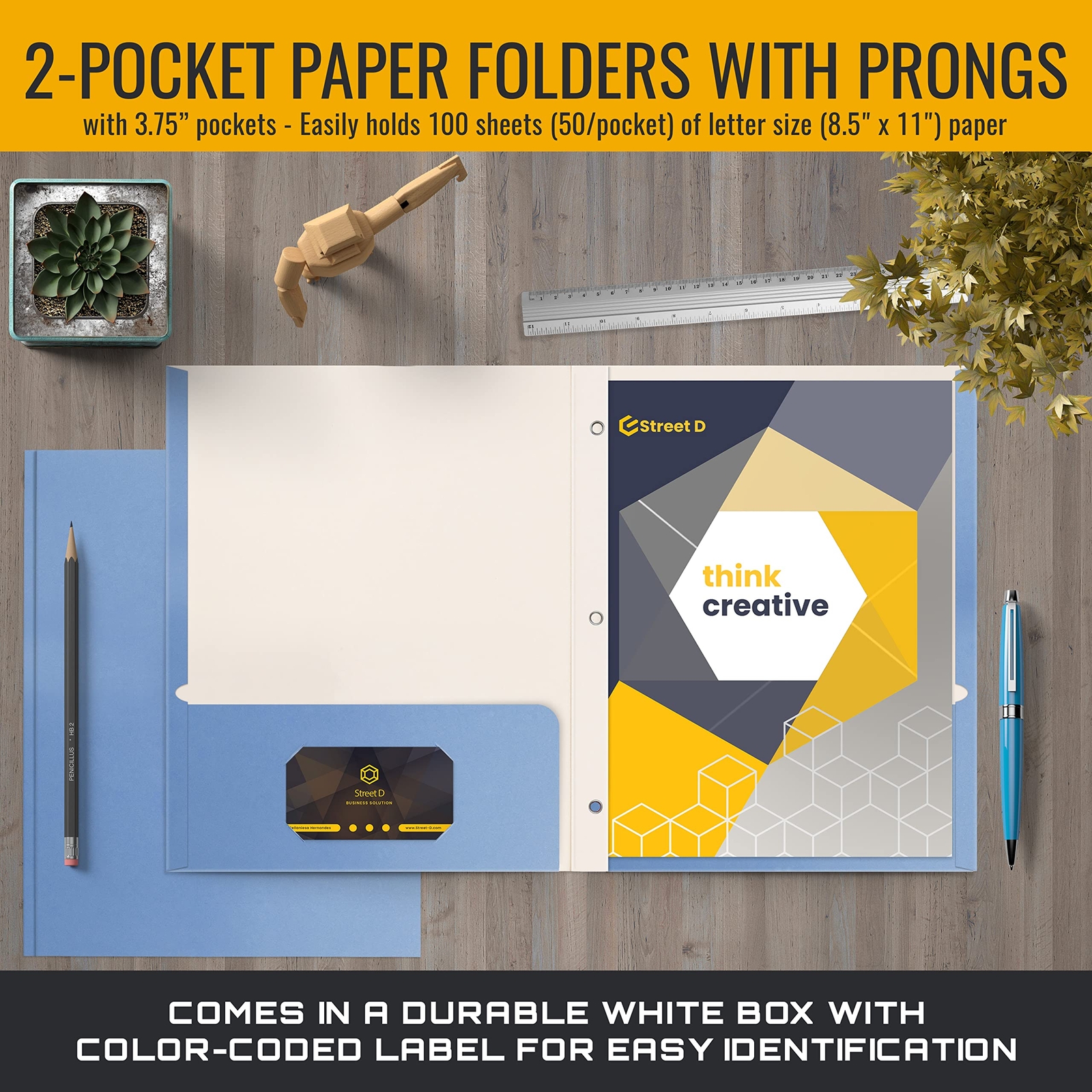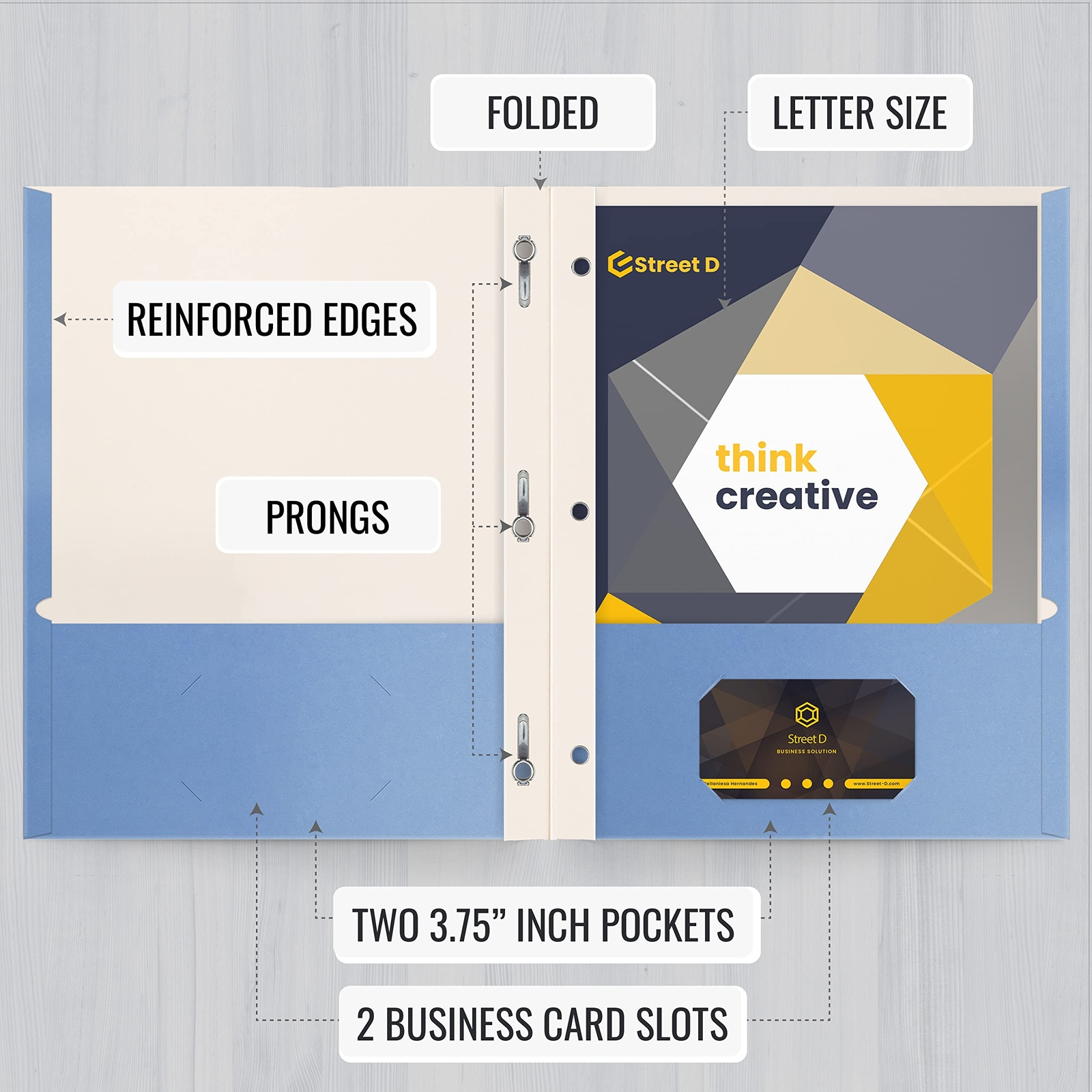 Light Blue Paper 2 Pocket Folders Prongs 50 Pack Matte Texture Letter Size