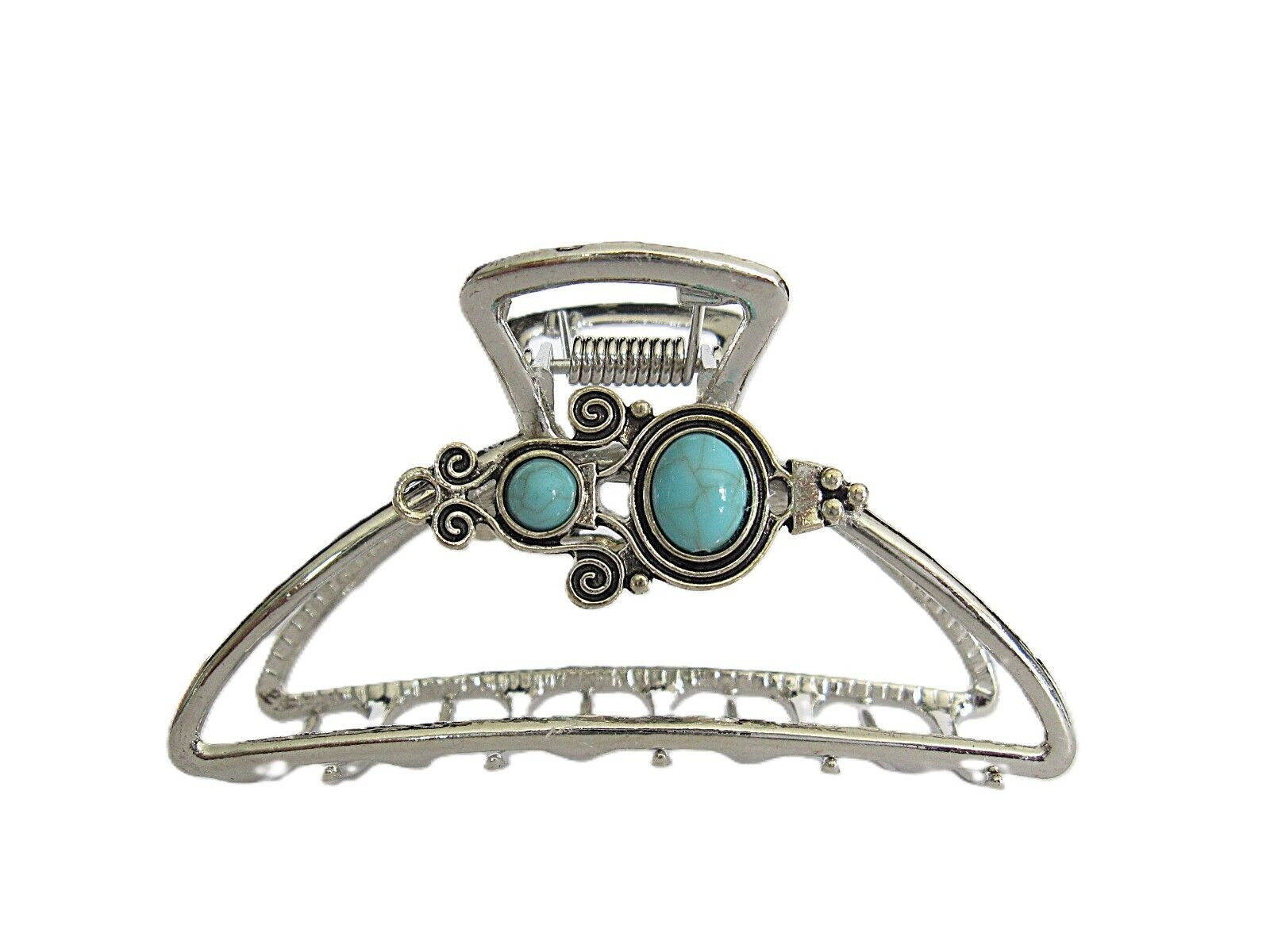 Hair claw clip turquoise blue silver western style metal native design