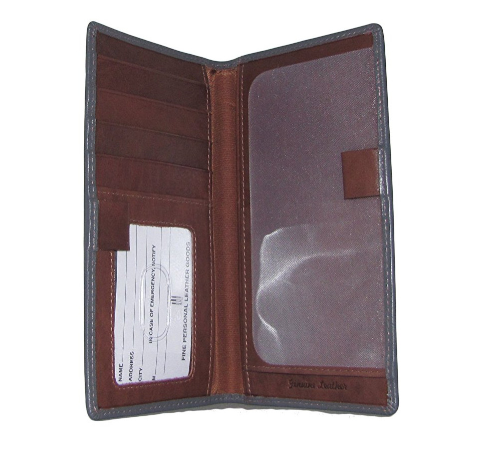 ILI Genuine Leather Checkbook Cover w/ RFB Card Slots and Pen Loop - Grey/Toffee