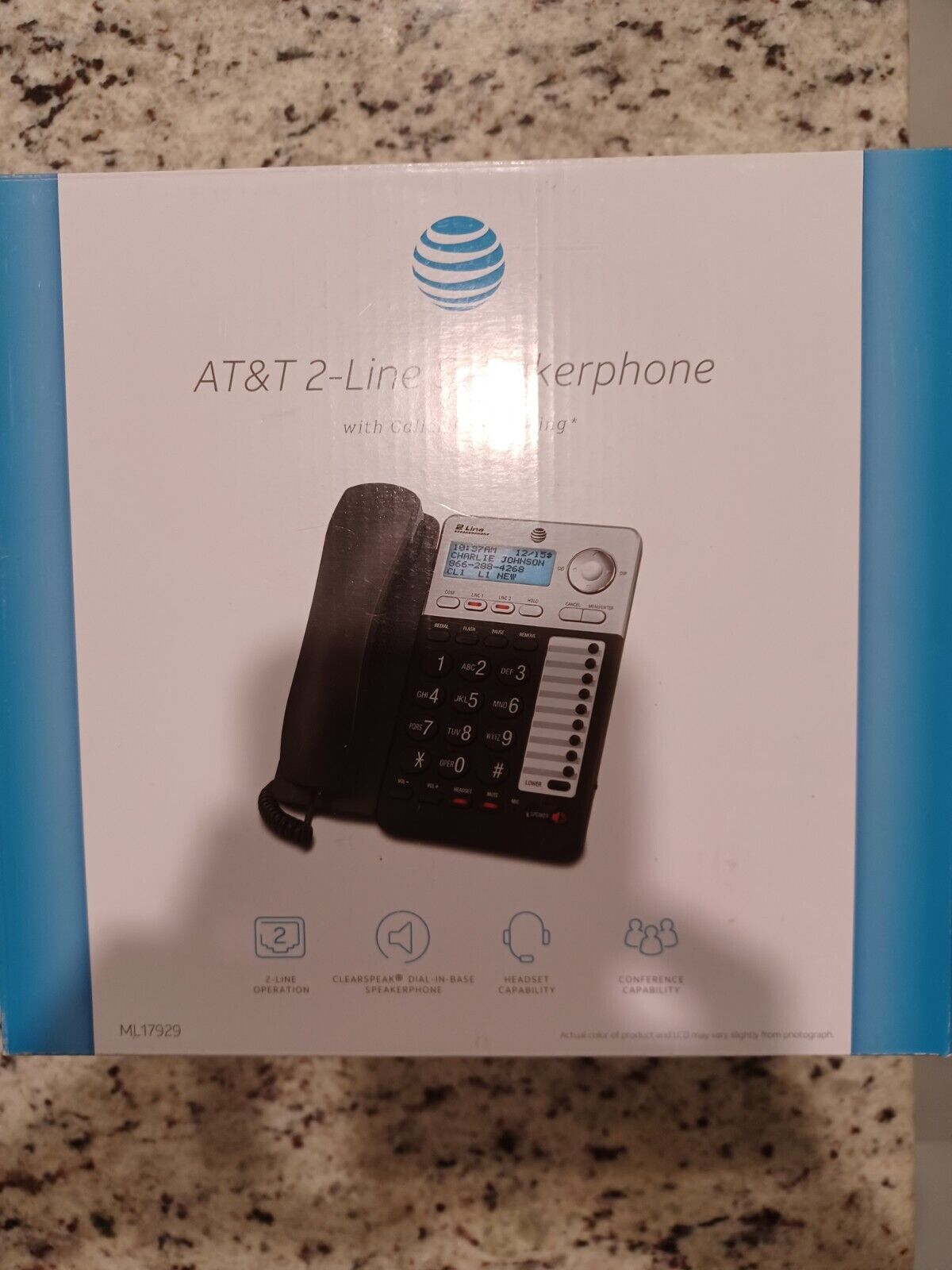 AT T Corded 2-Line Speakerphone Telephone, Caller ID, Silver/Black ML17929 BOX