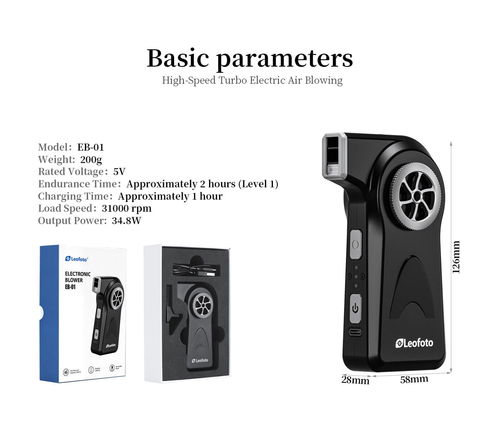 Leofoto EB-01 Electric Air Blower Jet Fan Cleaner for Cameras More