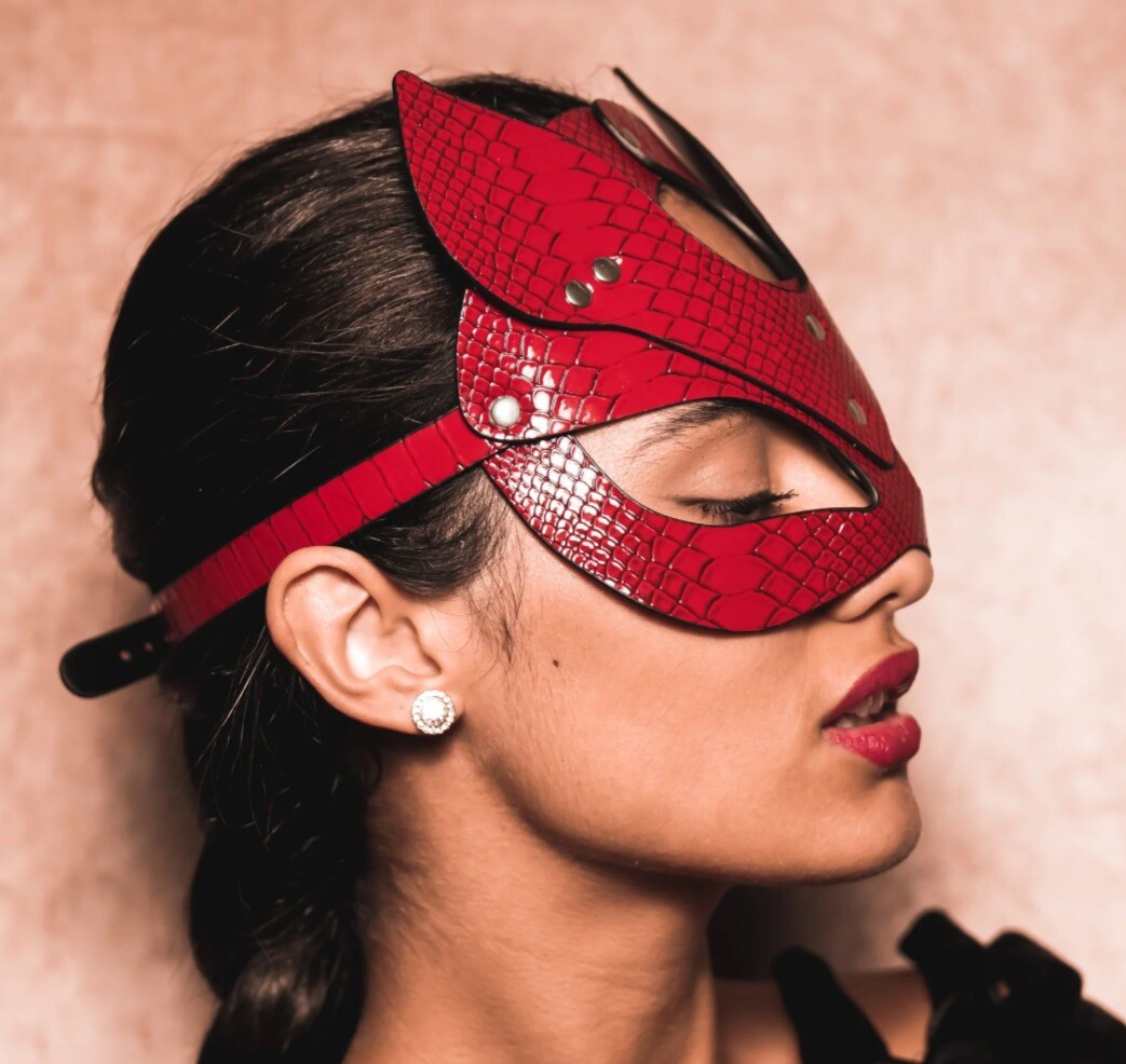 Cat Women Red Devil Mask Cat Mask Leather Cat Mask Snakeskin Cat Woman Red