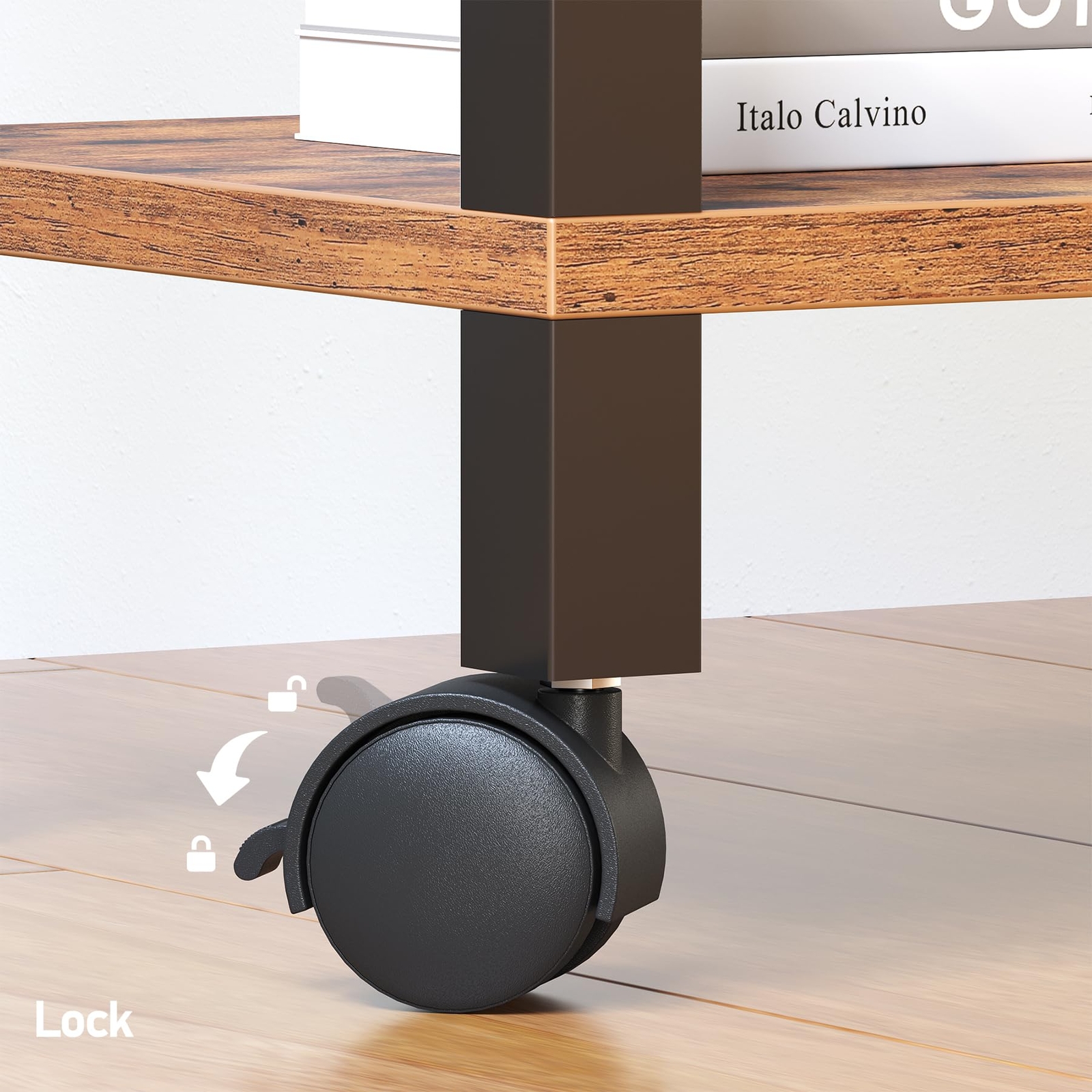 2-Tier Printer Stand Rolling Mobile Cart with USB Brown for Home Office