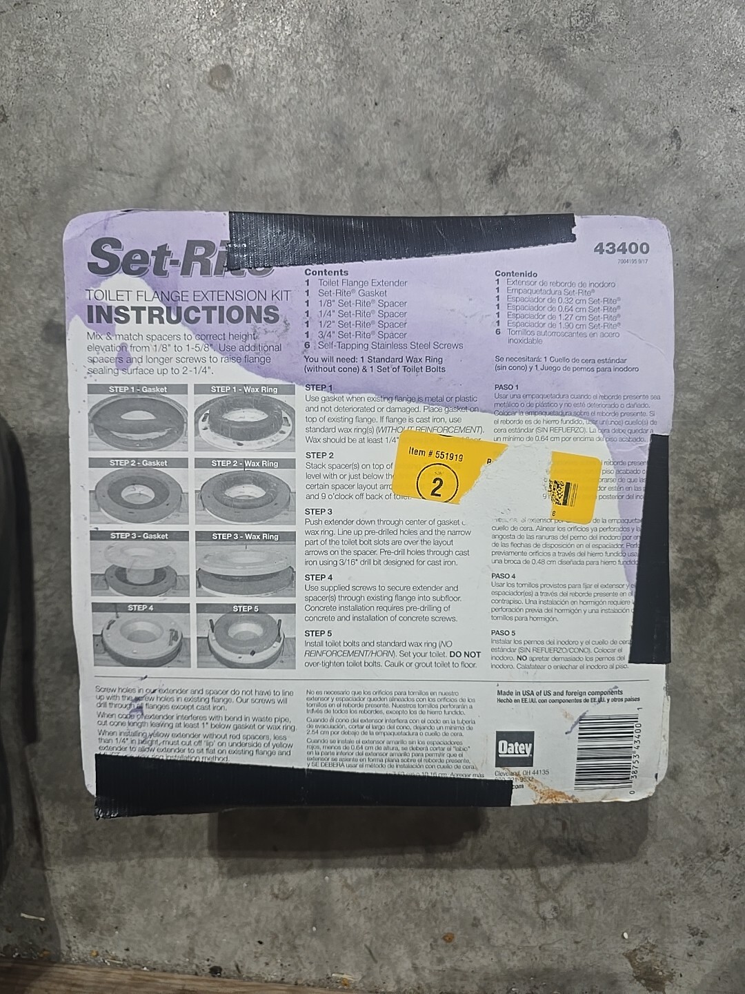 OATEY Set-Rite Toilet Flange Extension Kit: Elevation From 1/8 to 1-5/8 43400