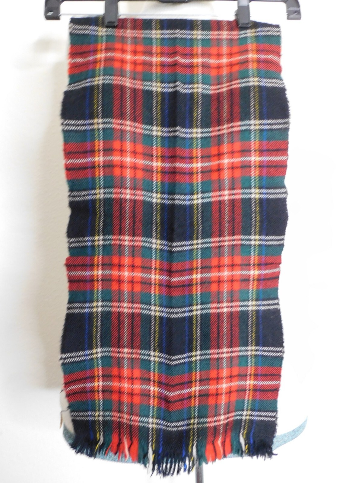 как выглядит Vintage Virgin Wool Plaid Scarf 47 x 11 Red Green White фото