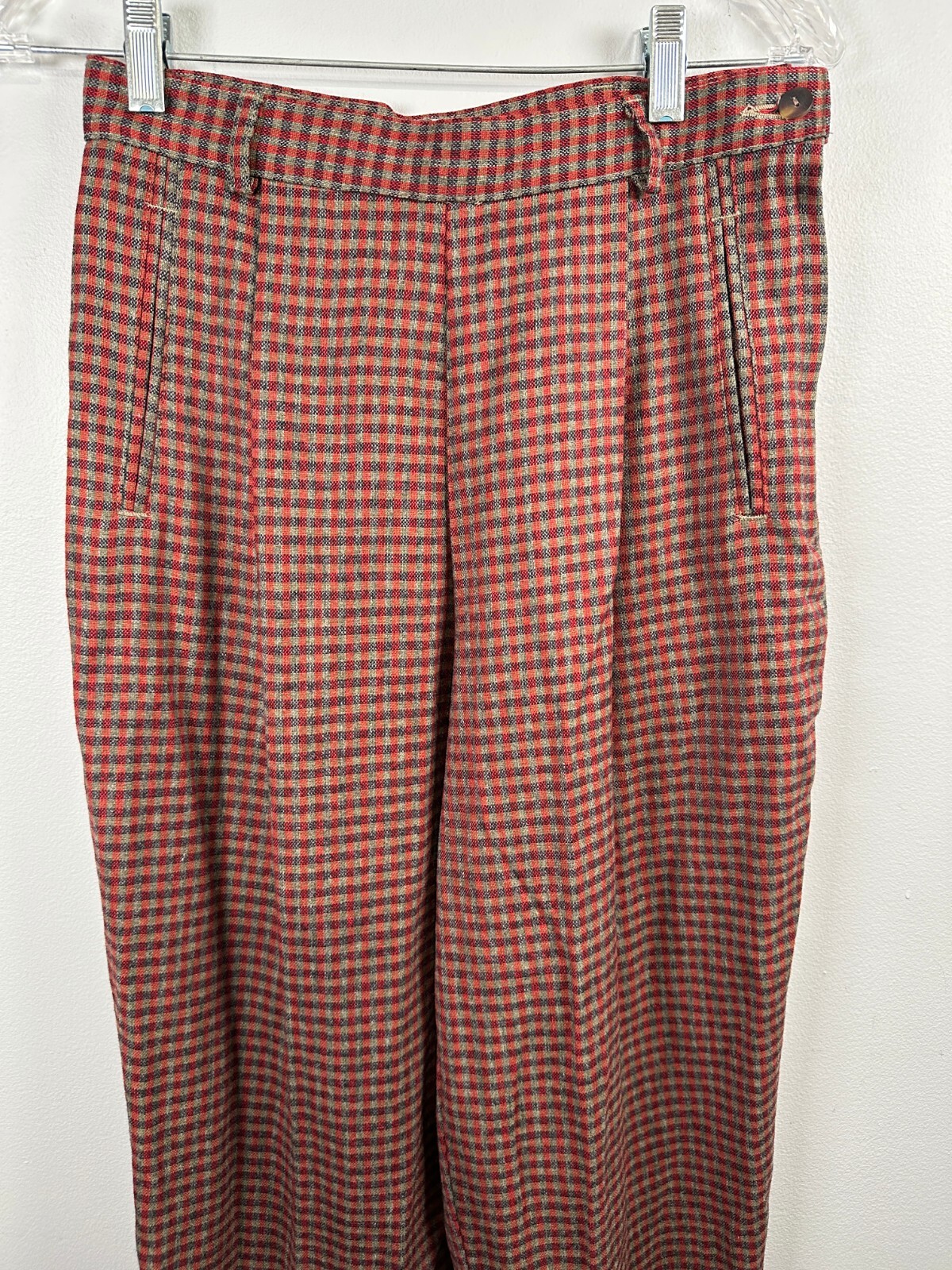 Vintage Esprit Womens Pants High Waist 9/10 Plaid Red Lined Tapered Pleated NEW