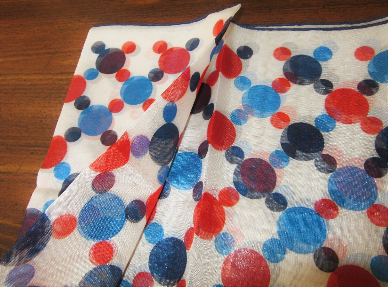 как выглядит Vintage Scarf Made in Italy Poly Red Blue Geometric Circles 12" x 44" фото