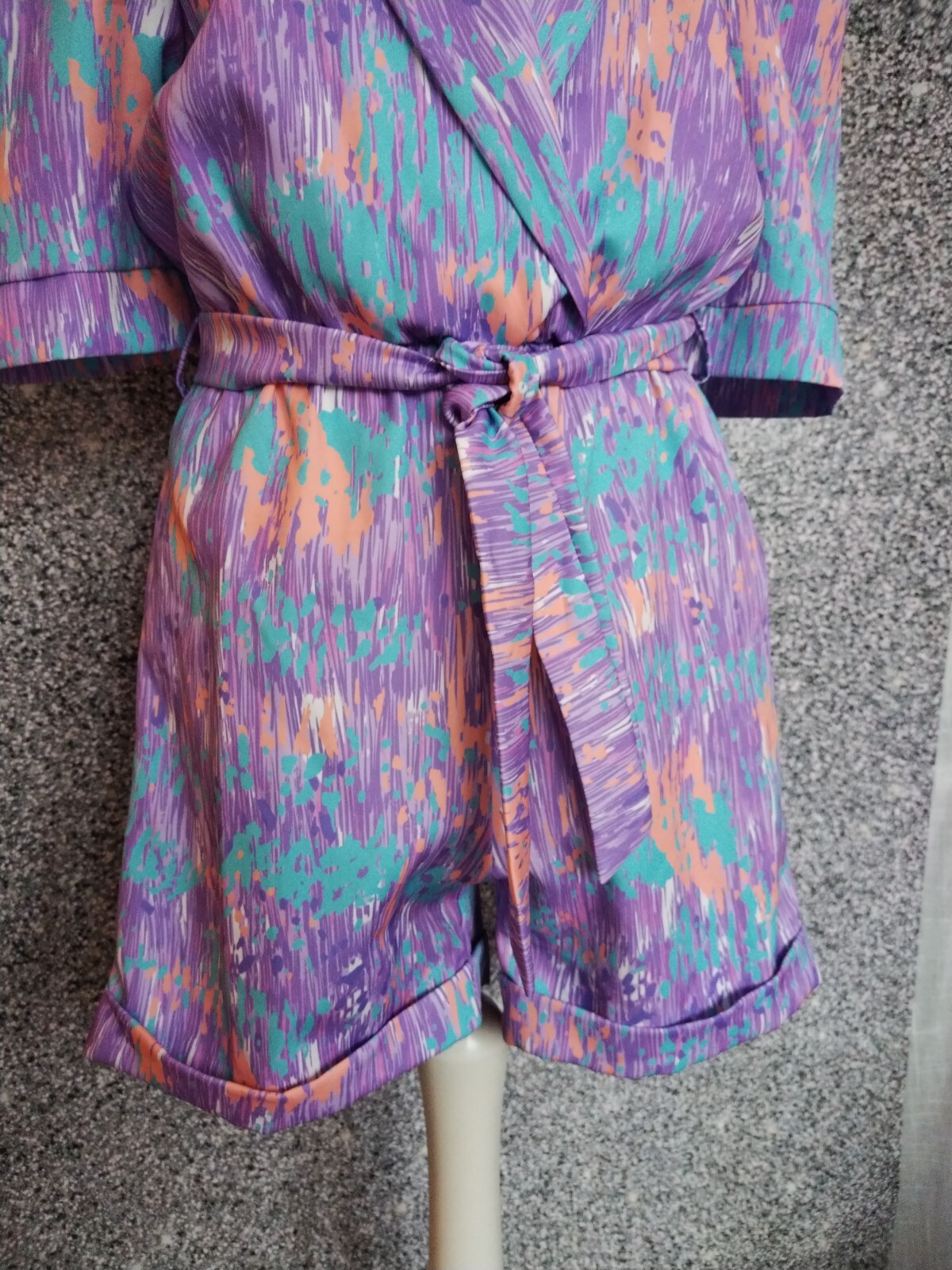 как выглядит S, 8, Playsuit, Purple Blue Orange Puffy Sleeve, Belted, Baggy Shorts фото