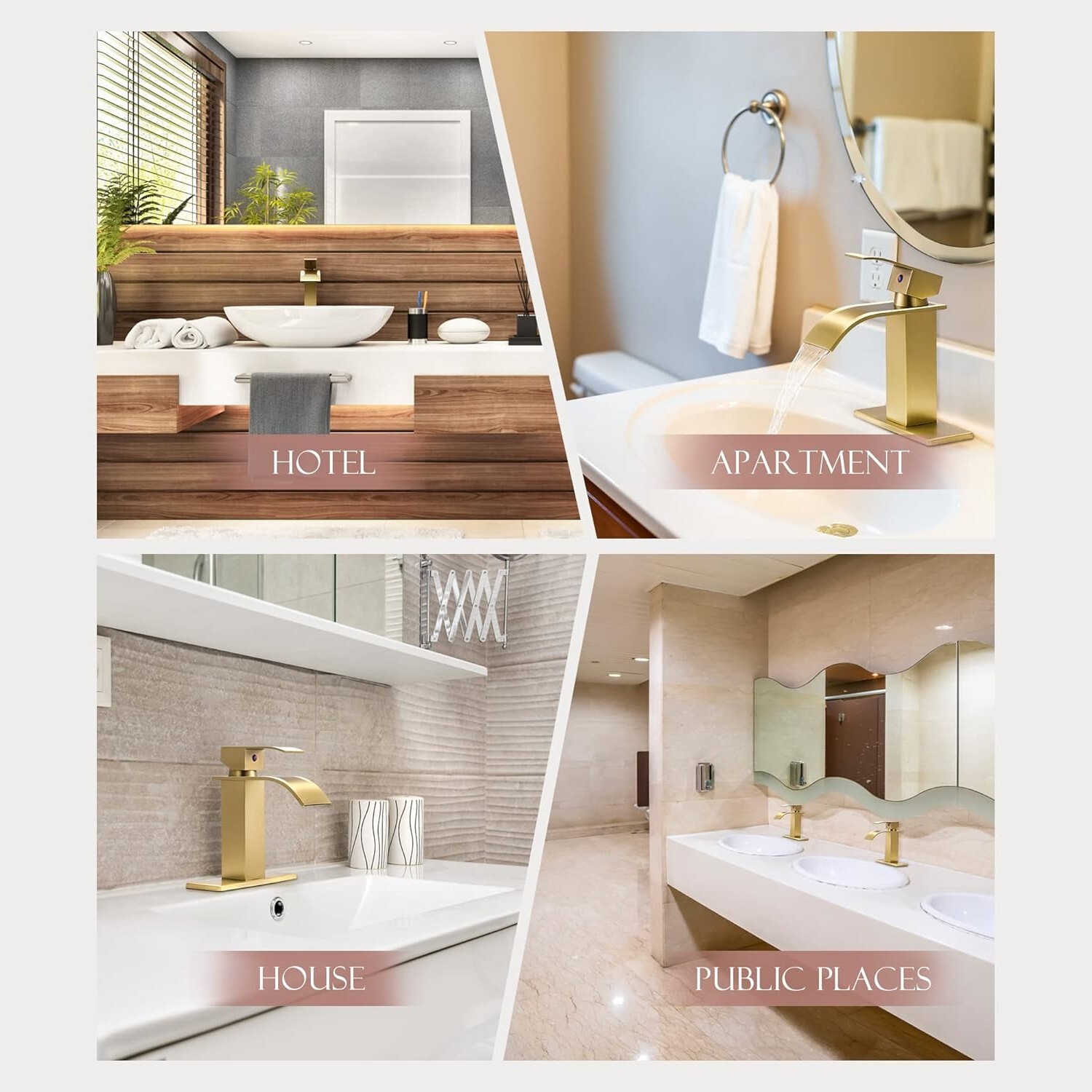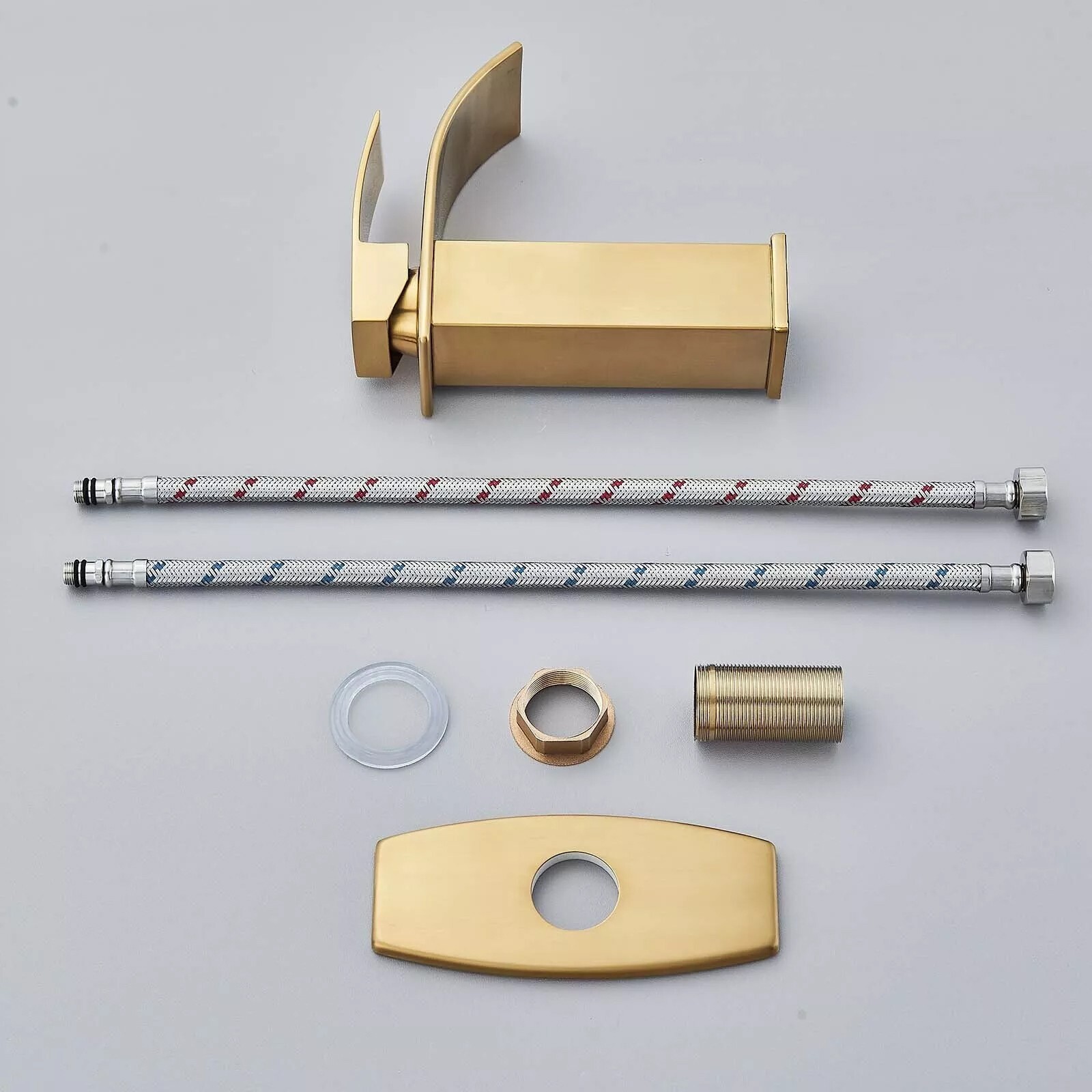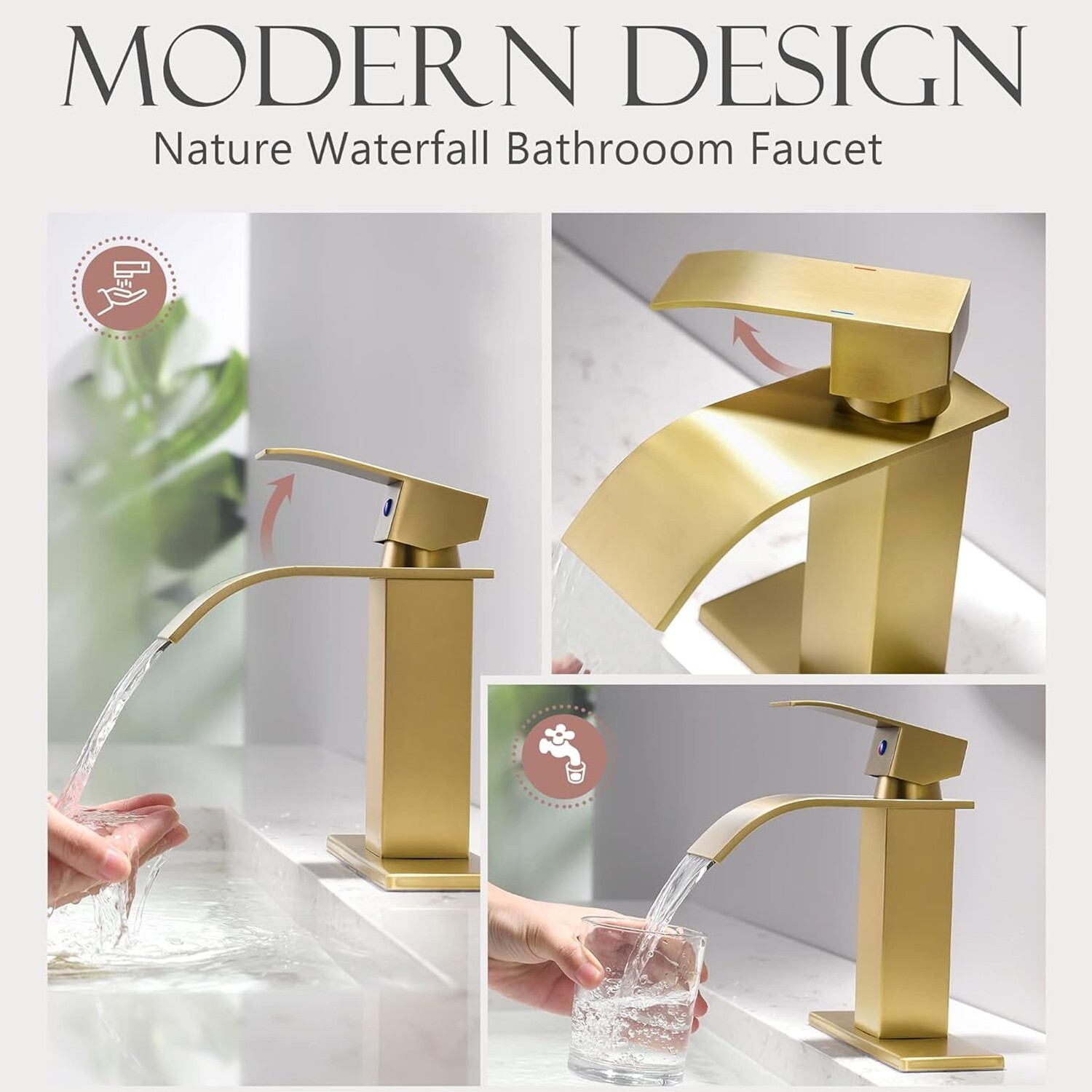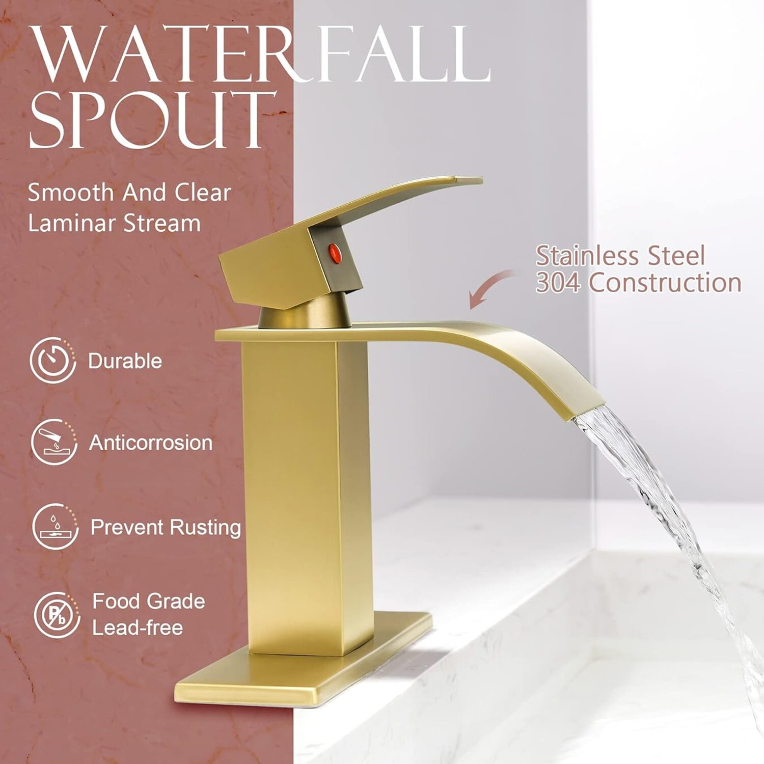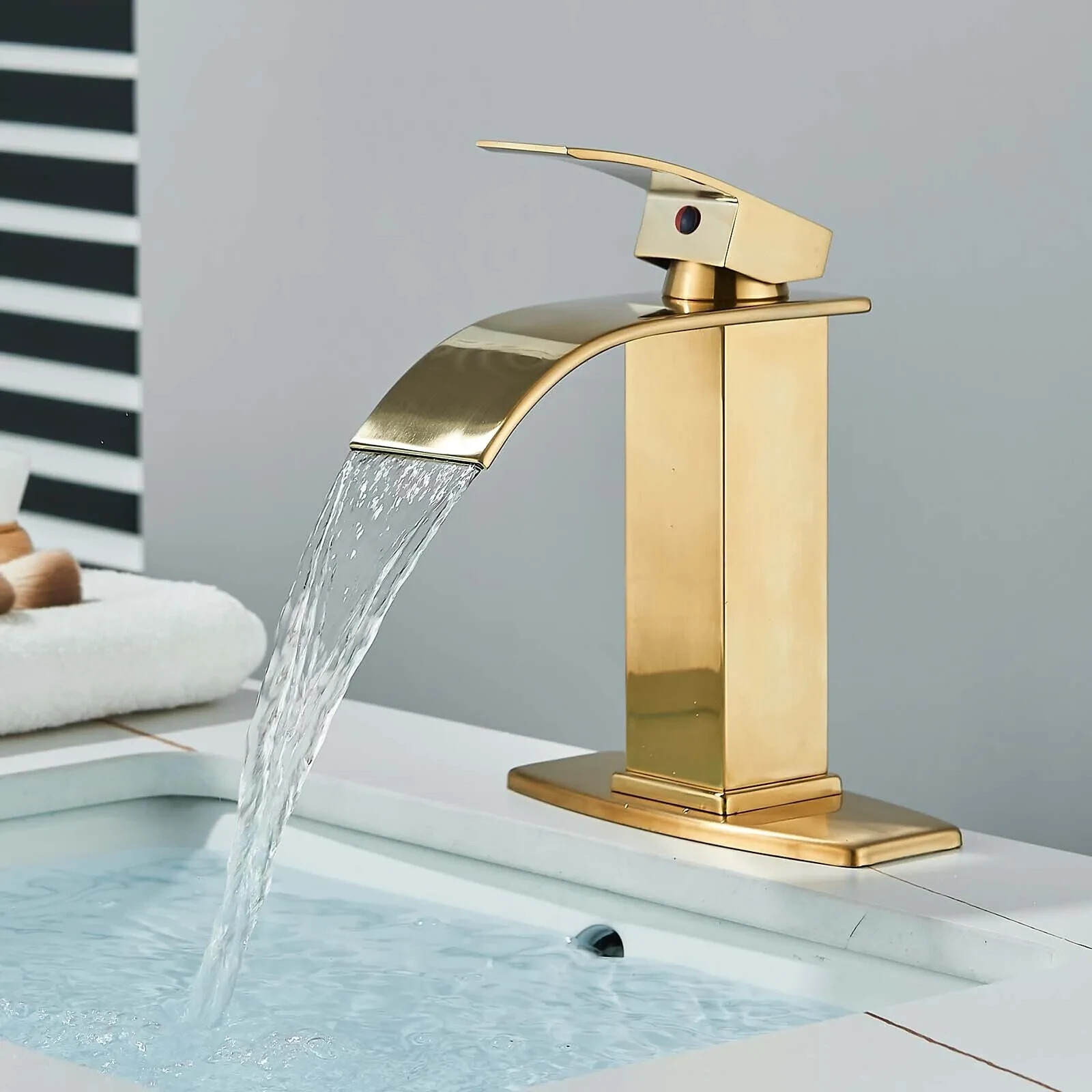 Brushed Gold Bathroom Sink Faucet Waterfall Single Handle Hole Vanity Mixer Tap