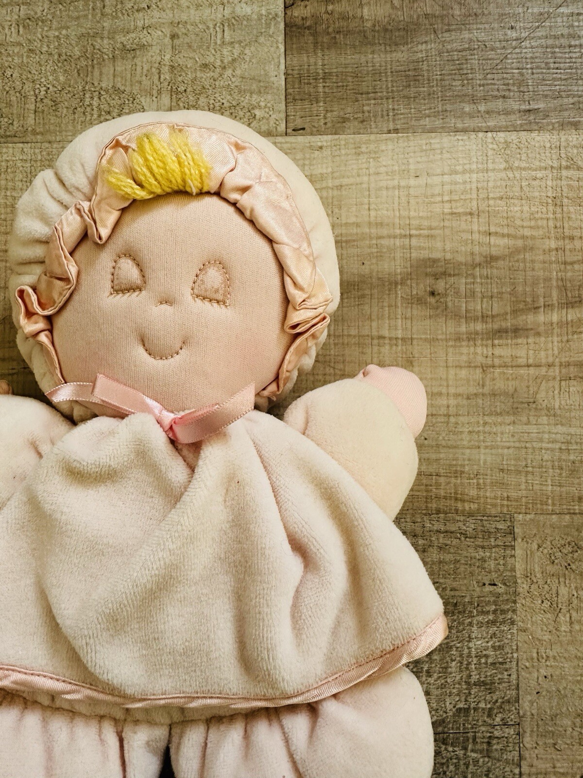 как выглядит Eden So Soft Baby Doll Plush Sleeping Eyes Lovey Velour Pink Squishy Satin Vtg фото