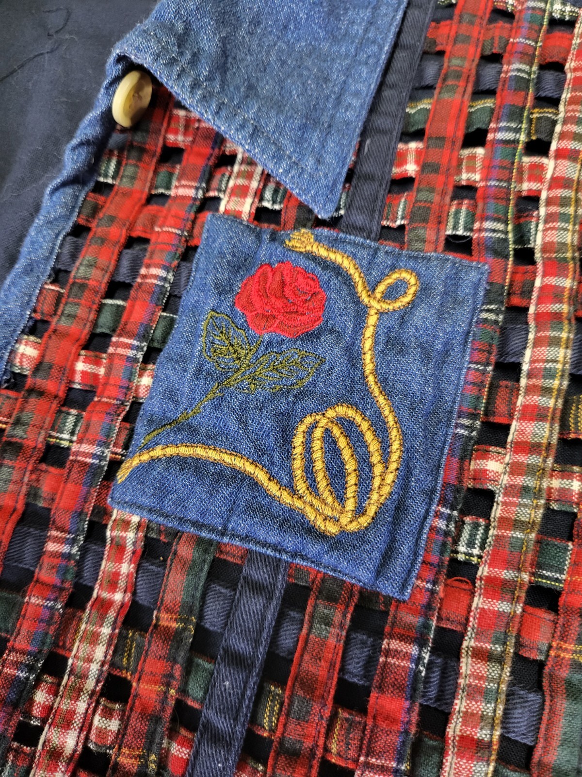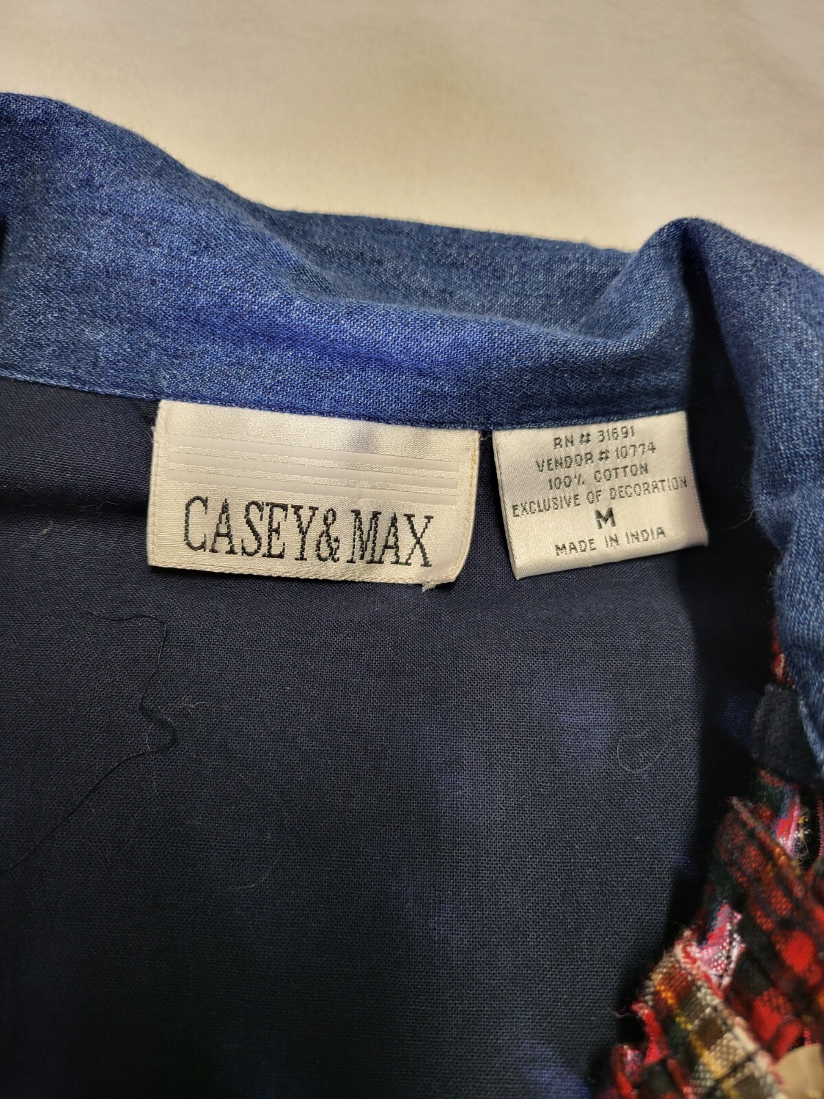 VTG CASEY AND MAX Denim Blue Plaid Basket Weave Vest Western Theme Medium