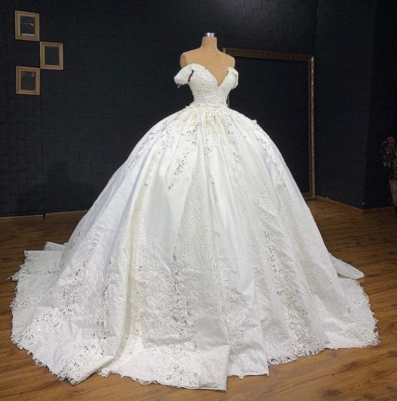 как выглядит Princess Off the Shoulder Wedding Dresses Lace Appliques Beaded Bridal Gowns фото