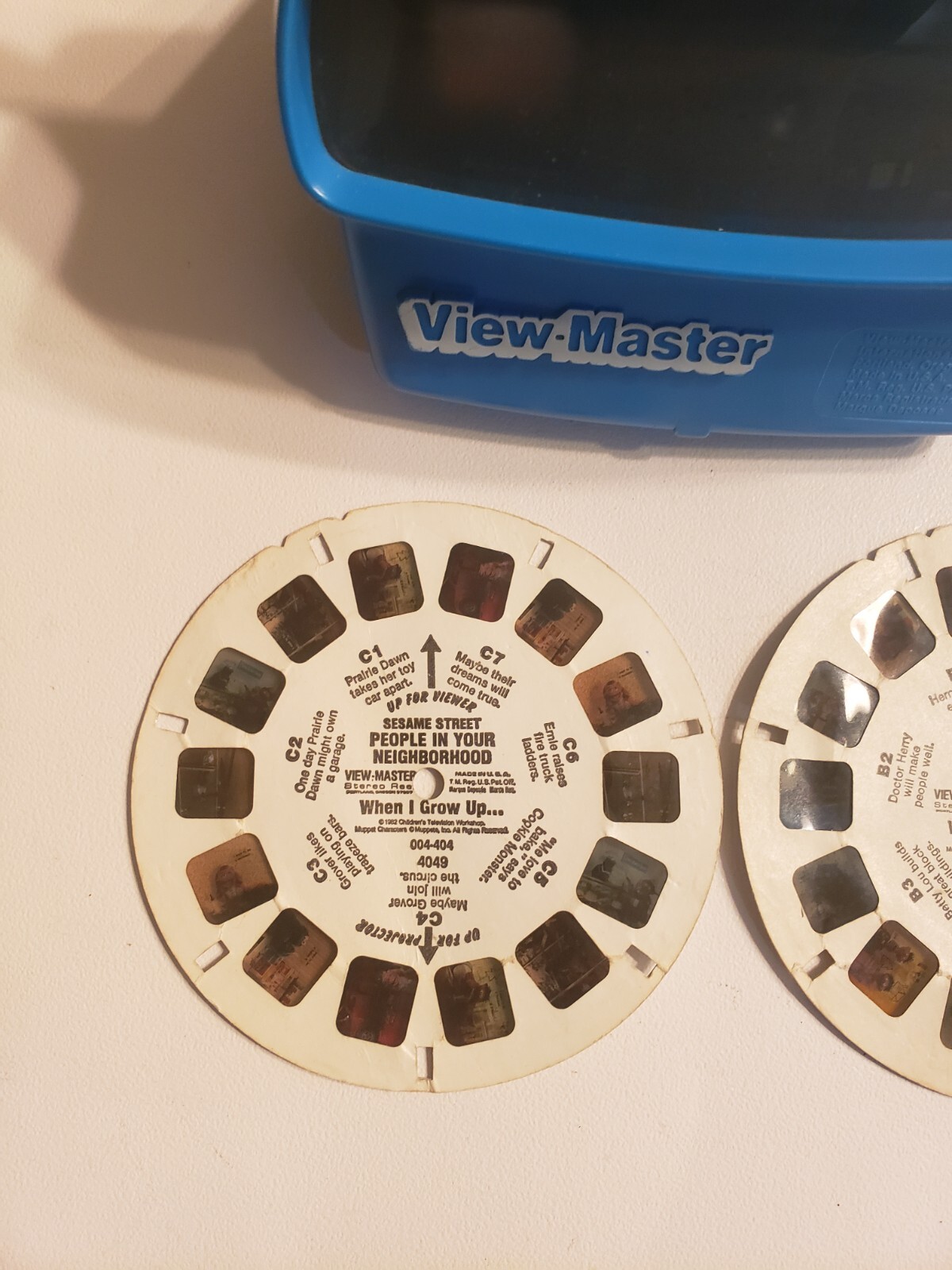 как выглядит ViewMaster Classic Reel Slide 3D Viewer Red Mattel 2014 W Sesame St 2 Disc RARE фото