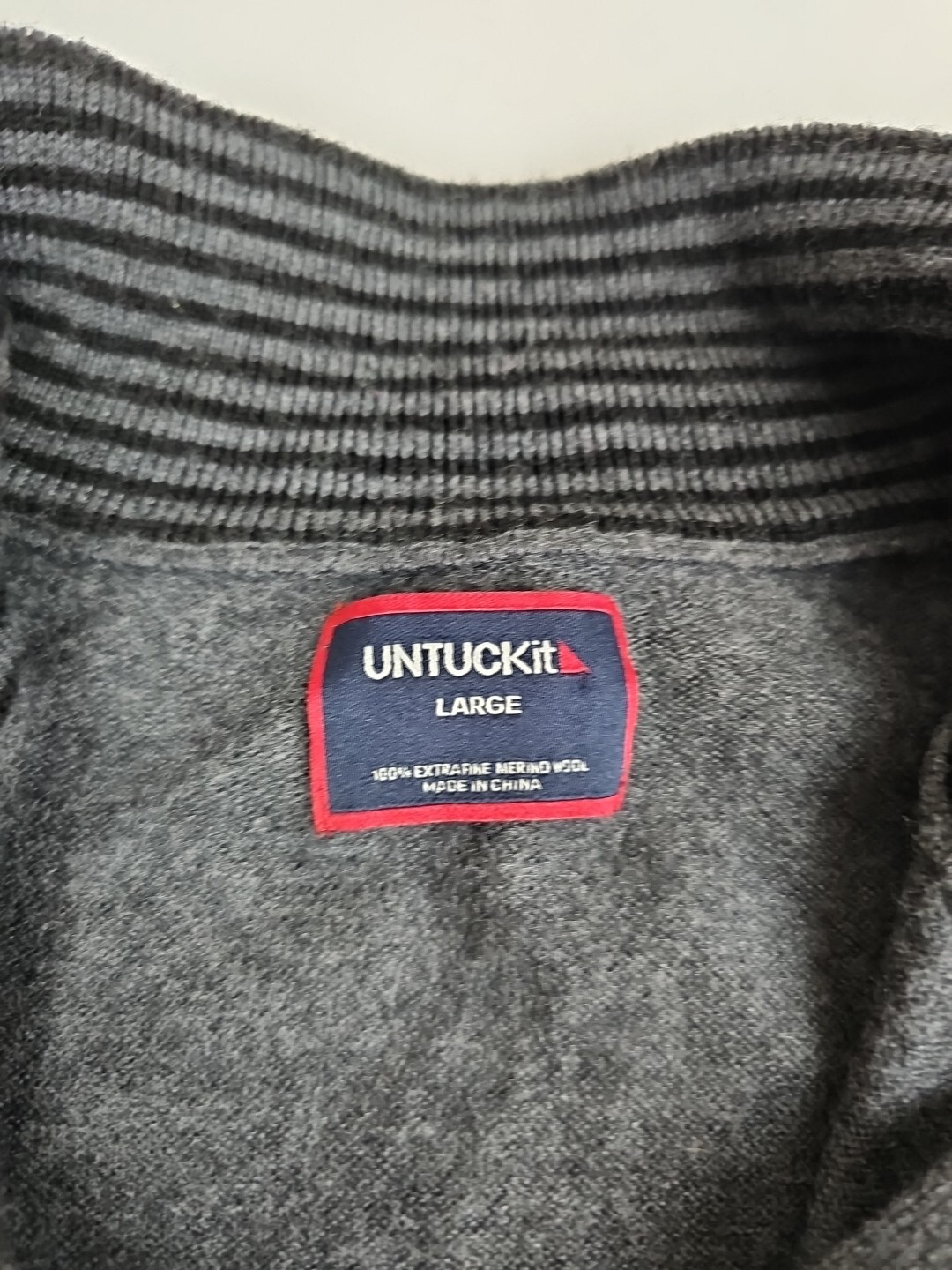как выглядит UNTUCKit Belguardo Extra Fine Merino Wool Quarter Zip Sweater Mens Large фото