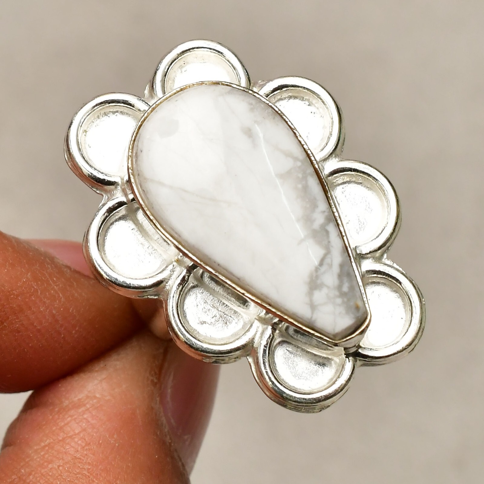 как выглядит Howlite Gemstone 925 Sterling Silver Handmade Jewelry Ring Size 7 фото