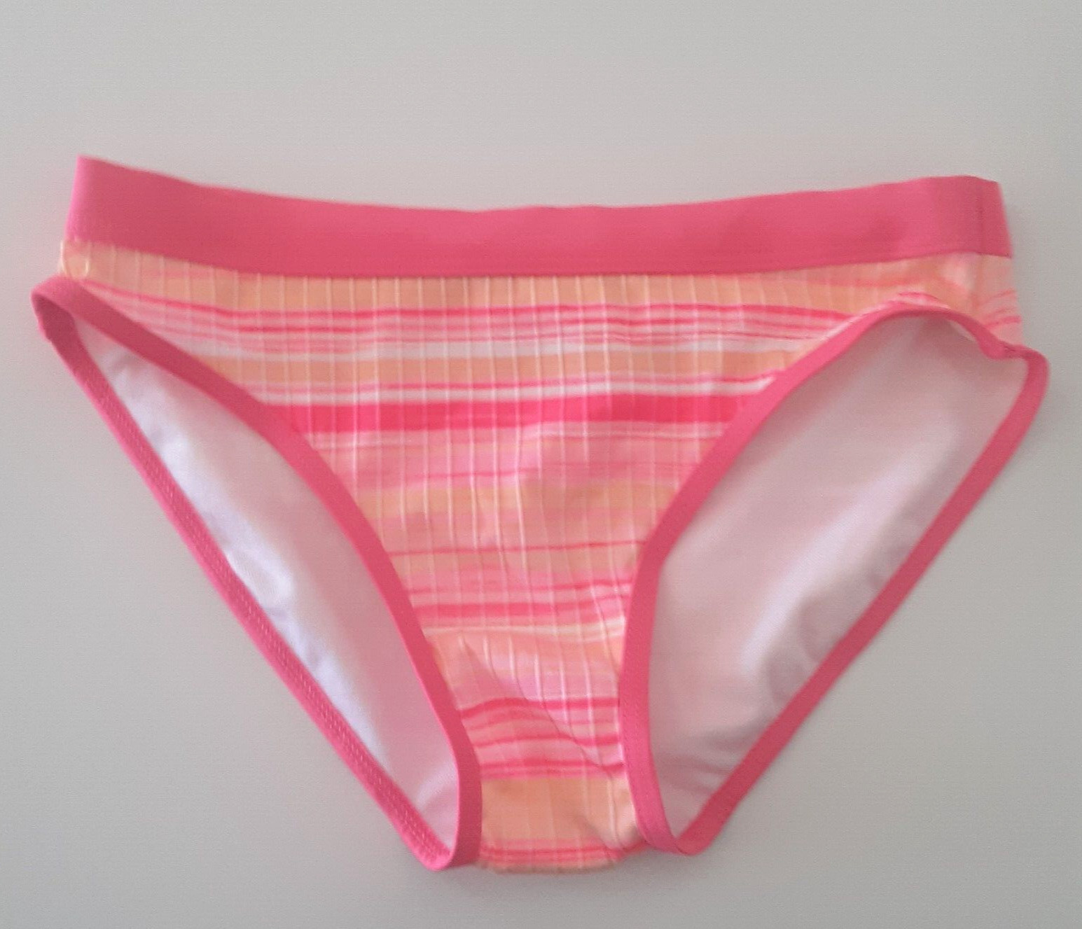 как выглядит Art Class Girls Size L 10/12 Textured Bikini Swim Bottom Pink Yellow Stripe фото