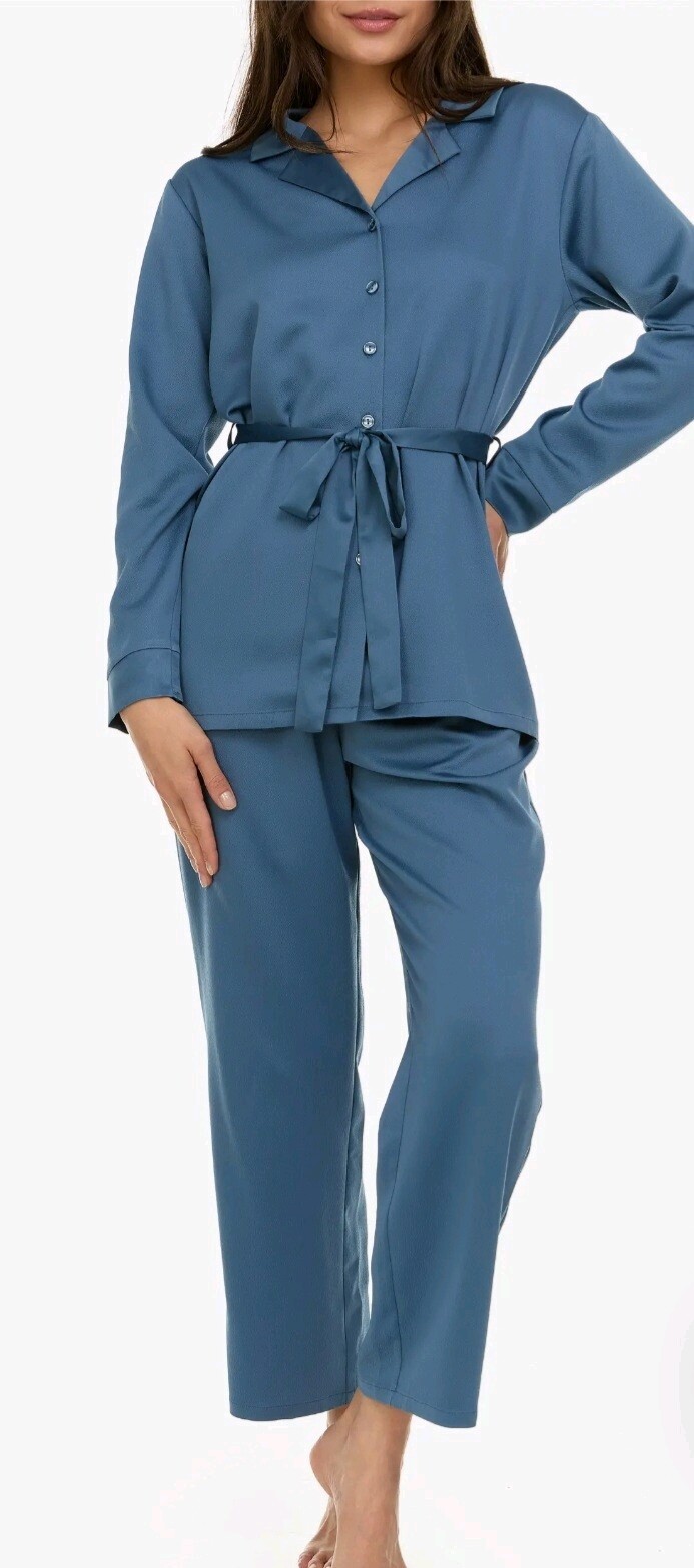 Flora By Flora Nikrooz Women s Hazel Hammered Satin Pajama Set Size L Teal NEW
