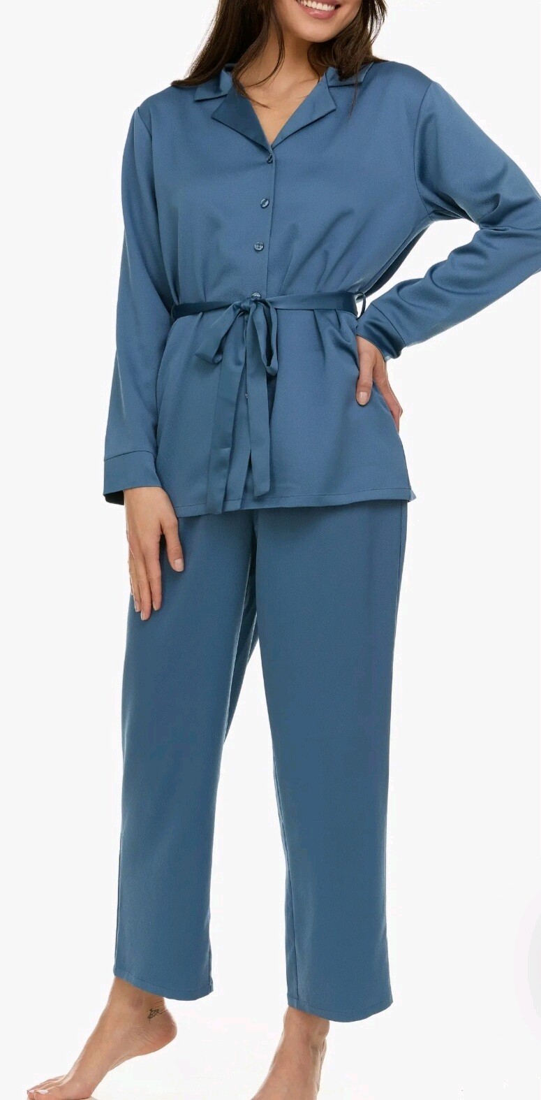 как выглядит Flora By Flora Nikrooz Women s Hazel Hammered Satin Pajama Set Size L Teal NEW фото