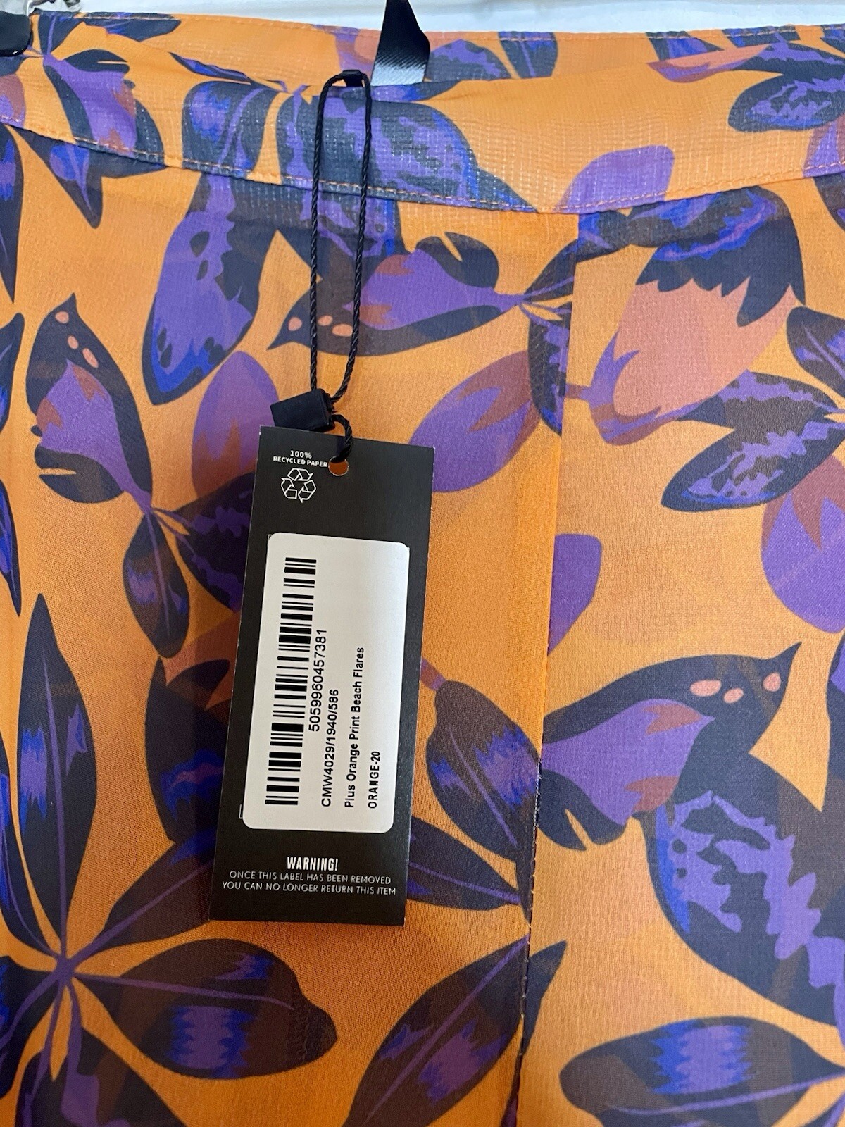 NWT Pretty Little Thing Colorful Sheer Orange Print Beach Flare Pants Size 16