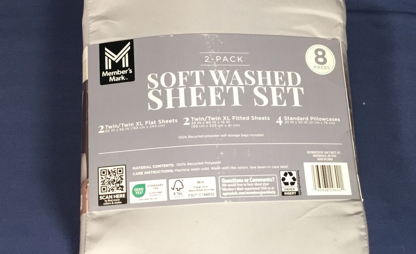 Member's Mark Soft Washed Sheet Set - 2-Pack 8 pcs Twin XL/Twin Gray Gray Strp
