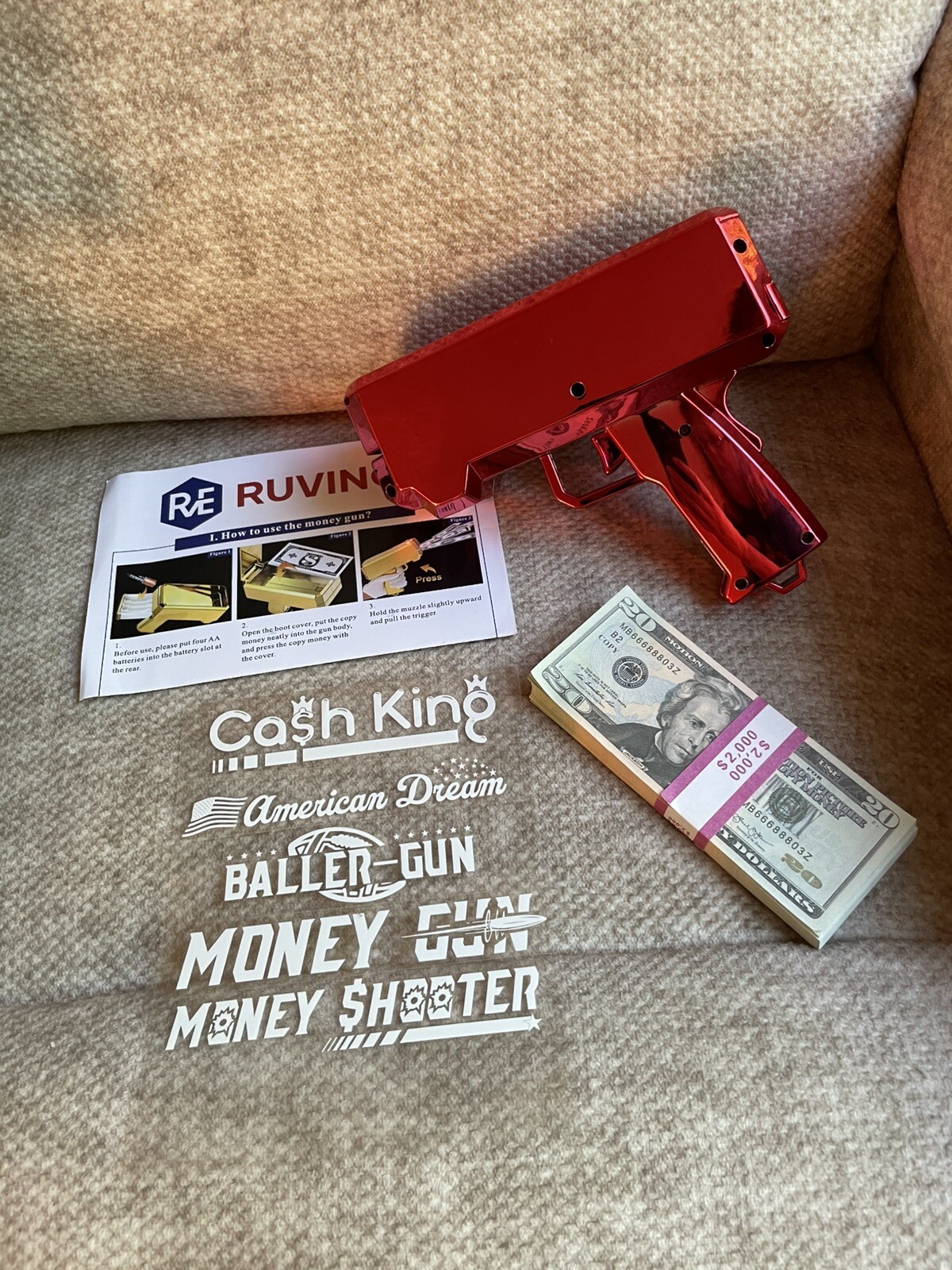 как выглядит RUVINCE Money Gun Shooter - Red - NEW - Open Box фото
