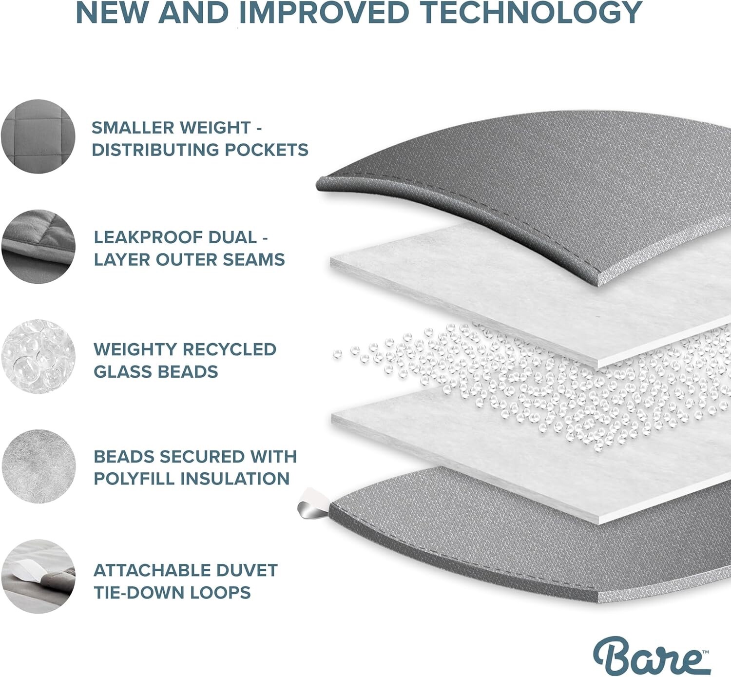 Bare Home 17lb Weighted Blanket Queen Size 60''x80'', Minky Fleece, Glass Bead