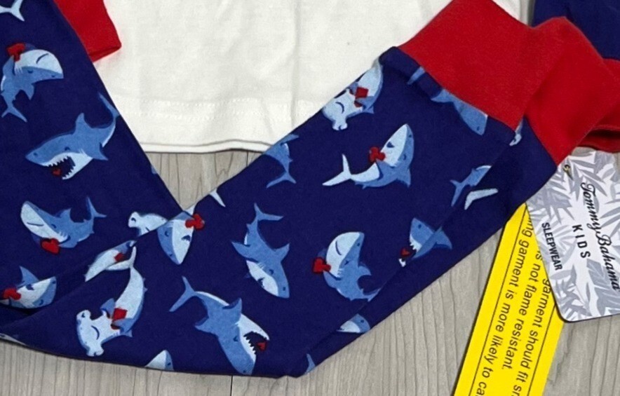 Tommy Bahama Kids 3T NWT Valentine You're Jawsome Shark PJs pajama set red blue