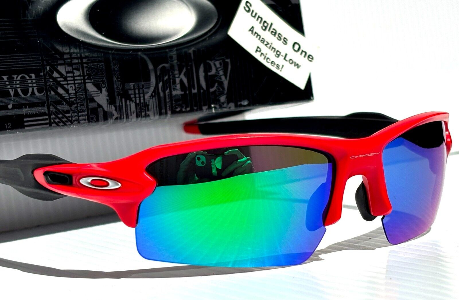 как выглядит NEW Oakley FLAK 2.0 Matte Redline POLARIZED Galaxy Jade Mirror Sunglass 9188 фото