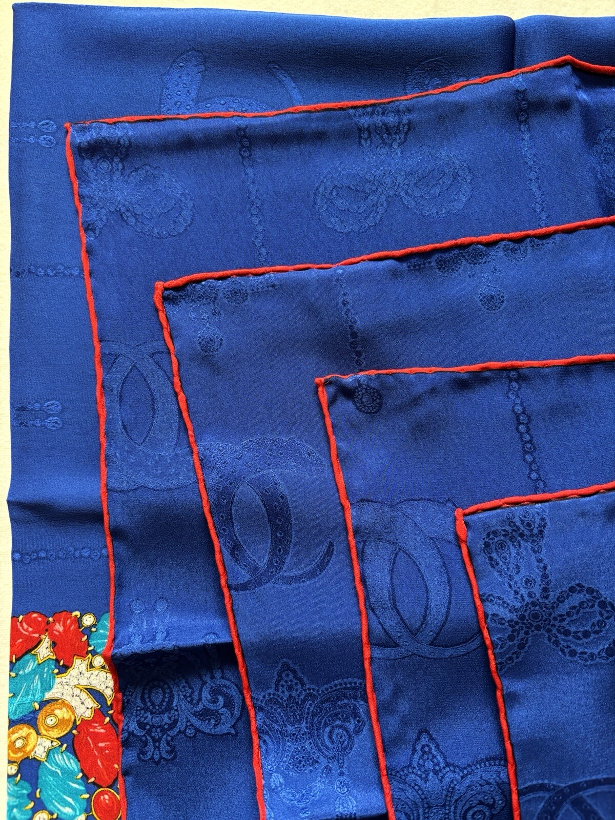 как выглядит Vintage But Brand New Cartier Blue Jewels Pattern Silk Scarf Carre 34"/86cm wBox фото