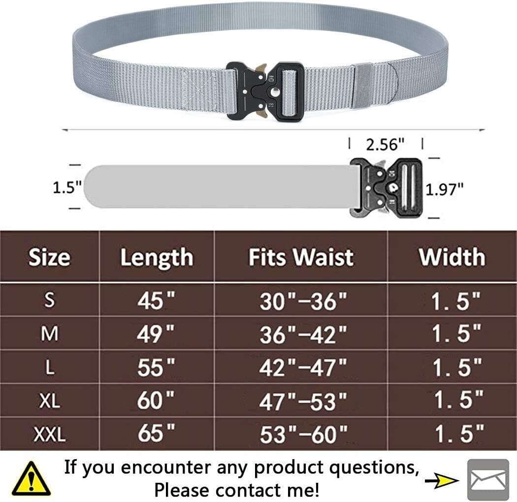 Adjustable Tactical Belt for Men with Quick Release Heavy Duty Buckle - Fits ...