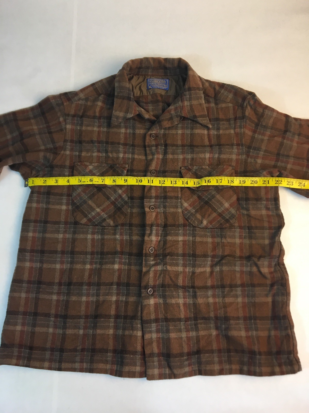 как выглядит Vintage Pendleton Men s L Virgin Wool Flannel Button Down Board Shirt Brown фото