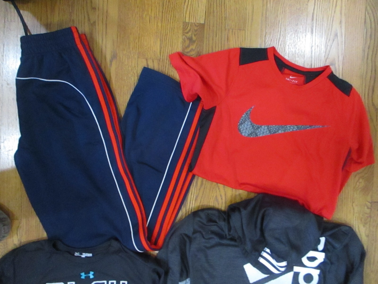 как выглядит Lot of 8 - Youth 3 Under Armour Shirts, 2 Adidas Track Pants, UA SHORT Size YXL фото