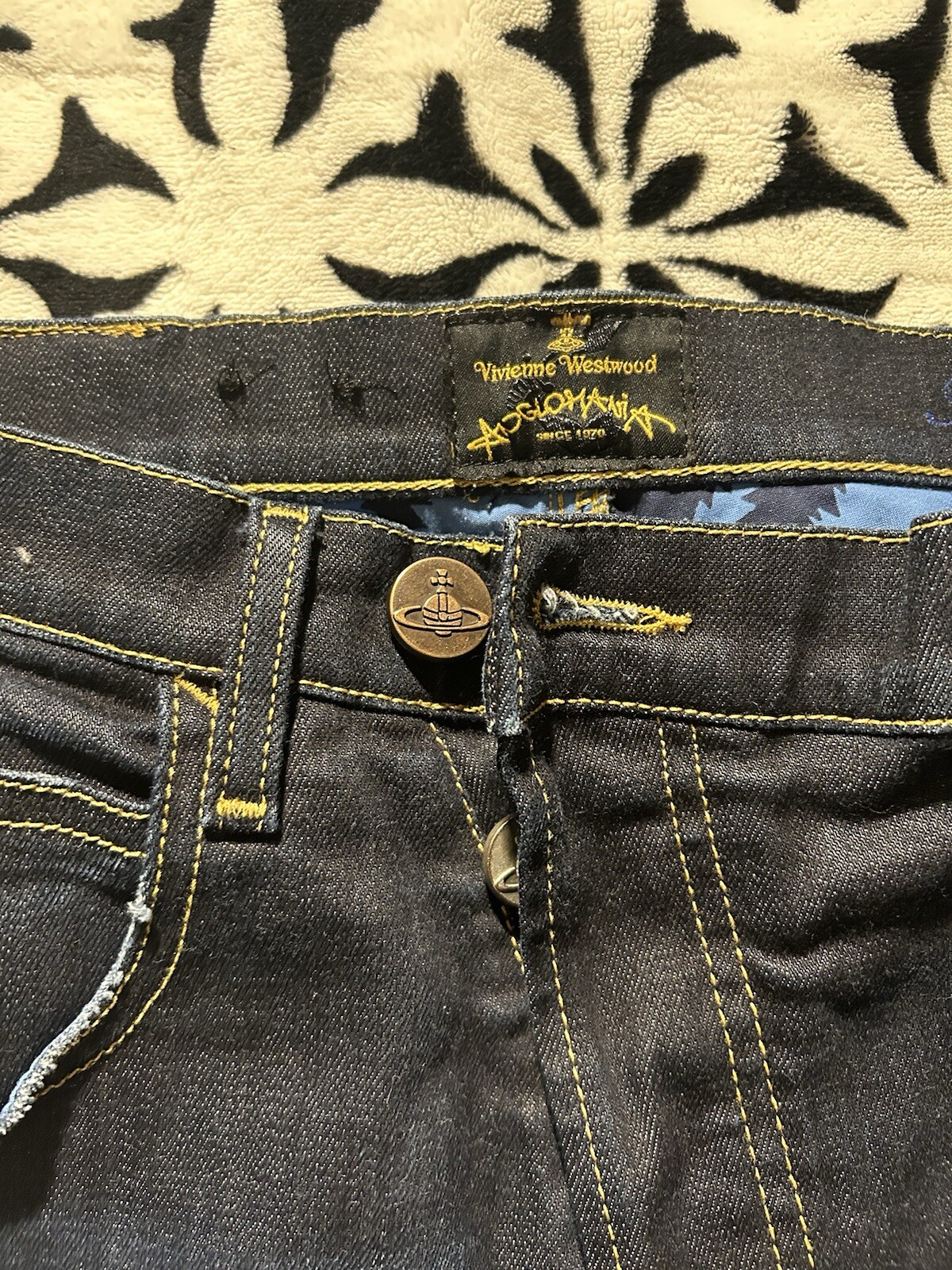 как выглядит Baggy Navy Blue Vivienne Westwood Anglomania jeans with unique back pocket фото